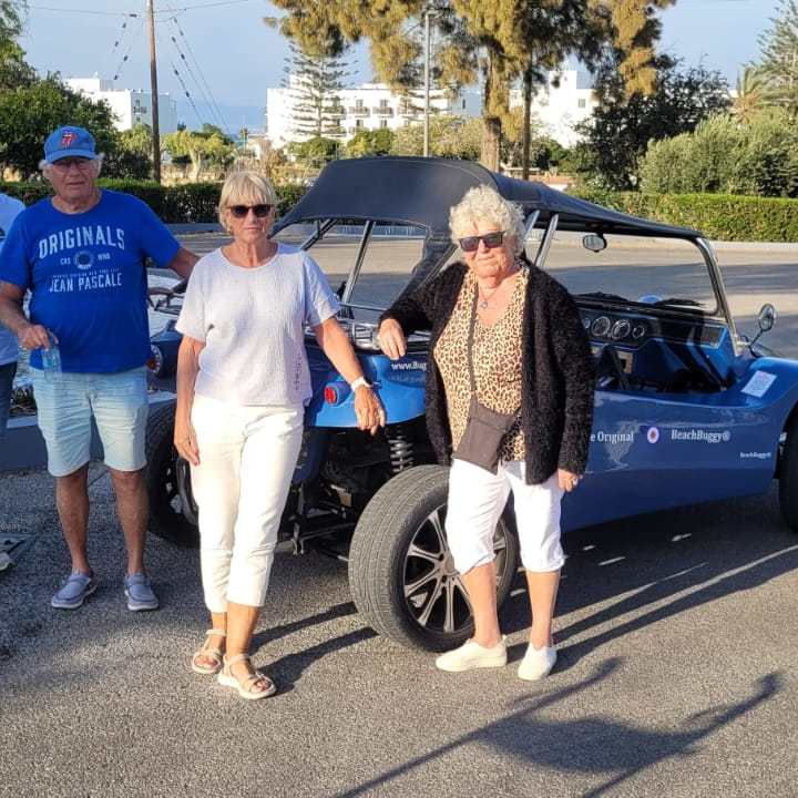 Vandaag vertrekt een groepje in een gehuurde buggy voor een rondje eiland. Het is een hele toer om achterin te gaan zitten, hierom is veel gelachen.