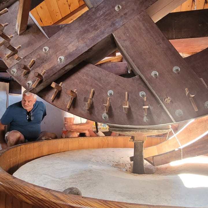 We zijn naar Antimachia gereden waar een heel oude molen staat en eigenlijk een klein levend museum.