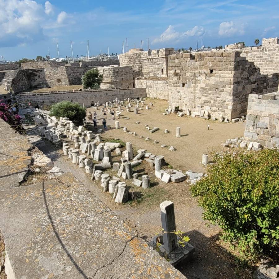 Op weg naar Zia kwamen we langs de opgravingen. Daar zijn we niet gestopt — dat kunt u altijd nog eens op eigen gelegenheid doen. Tip: pak bij de haven het treintje, dan komt u er vanzelf. Even later kwamen we langs het Odeon, onderdeel van de opgravingen in de stad Kos waar je zo kunt rondwandelen.