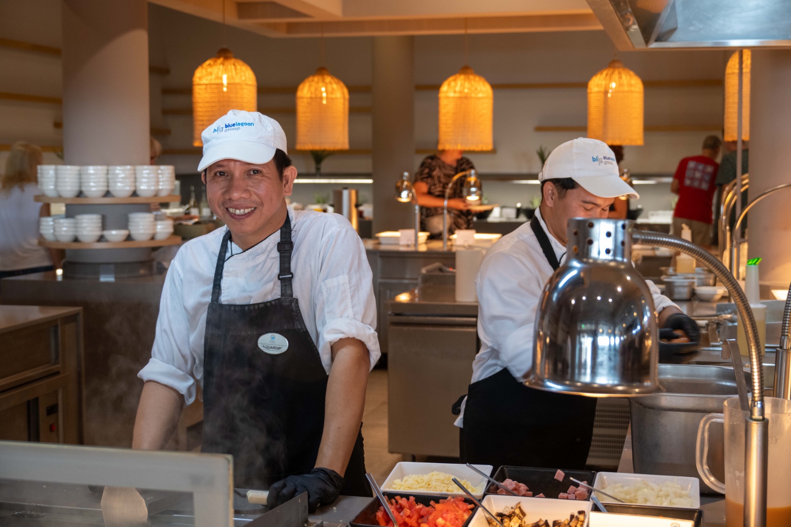 Na een heerlijke nachtrust zien we alle gasten weer in de ontbijtzaal verschijnen. Leuk hoe sommige mensen dan reageren; “super schoon en mooi hotel, en we hebben zeezicht… helemaal top, super mooi. Overdag ziet het er anders uit dan ’s nachts, heel mooi hoor”.