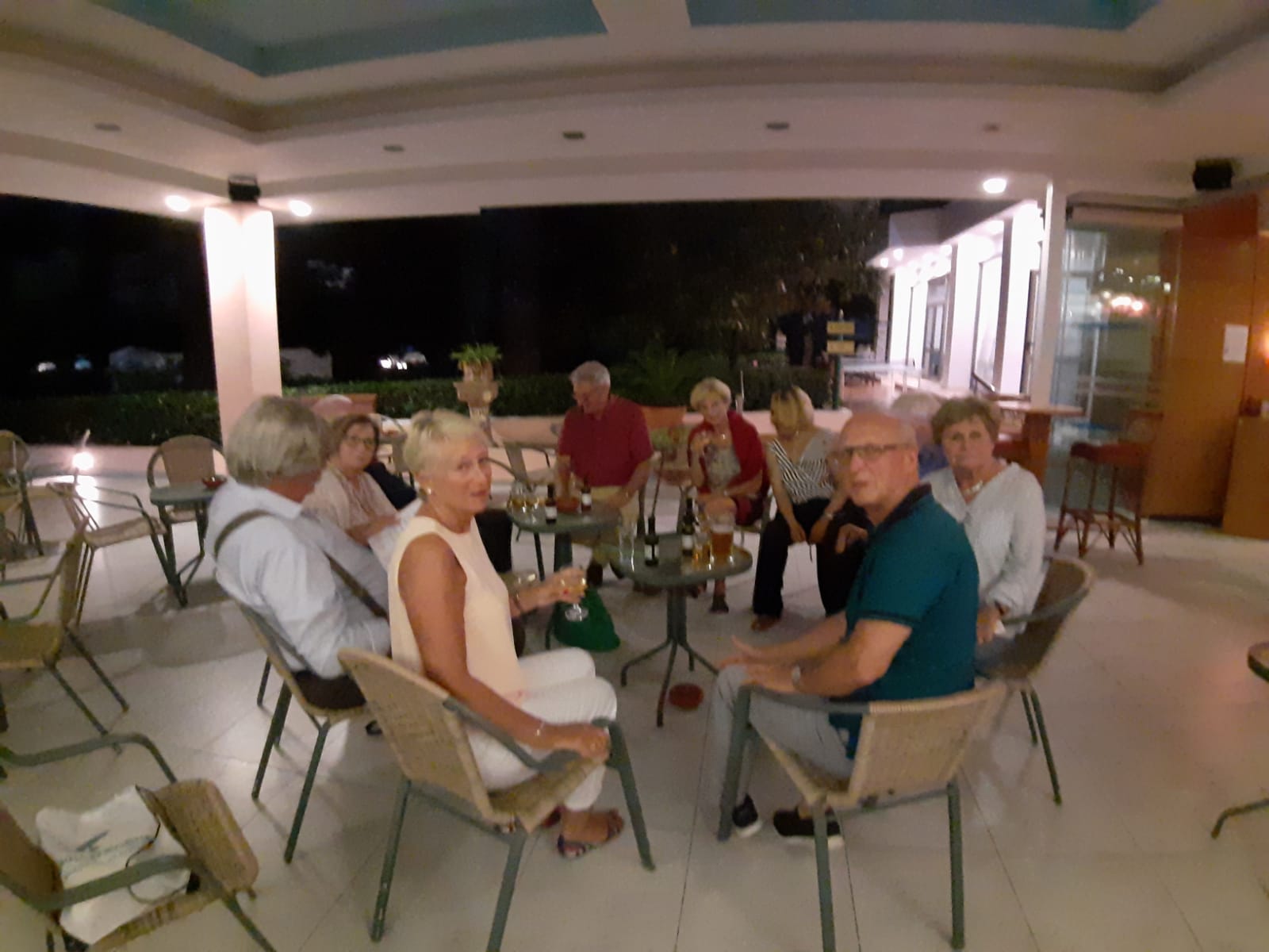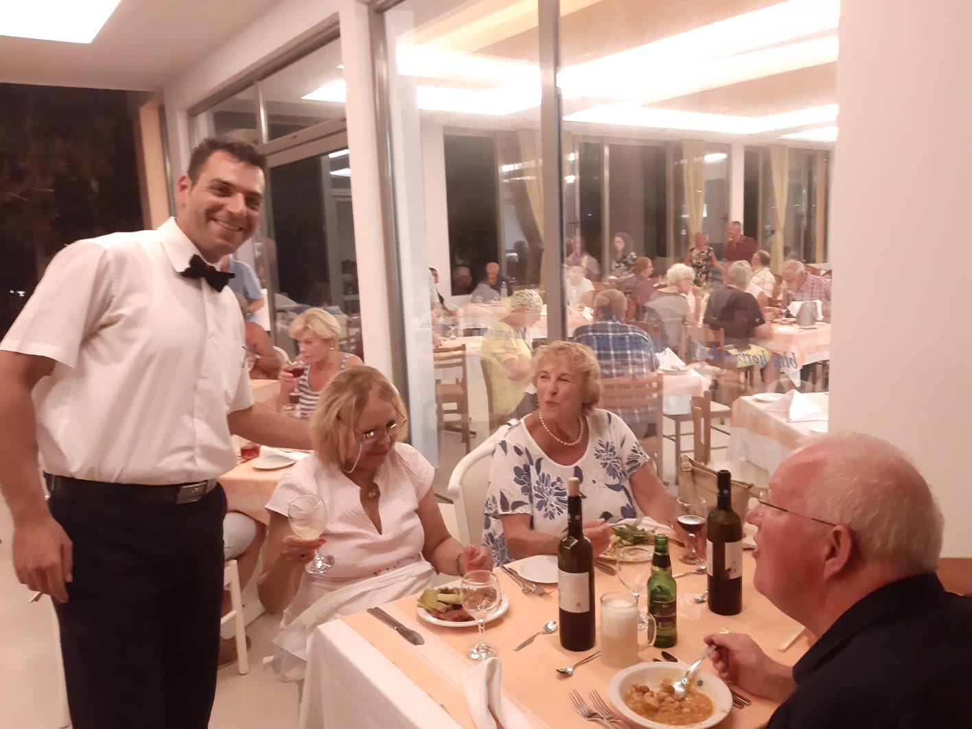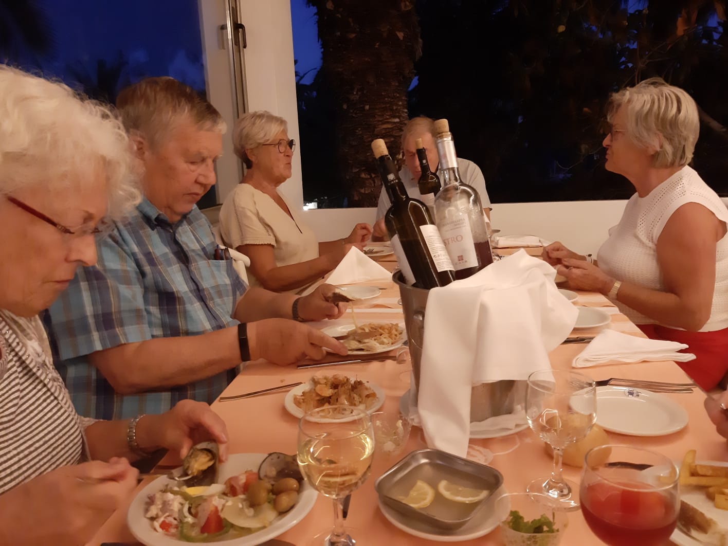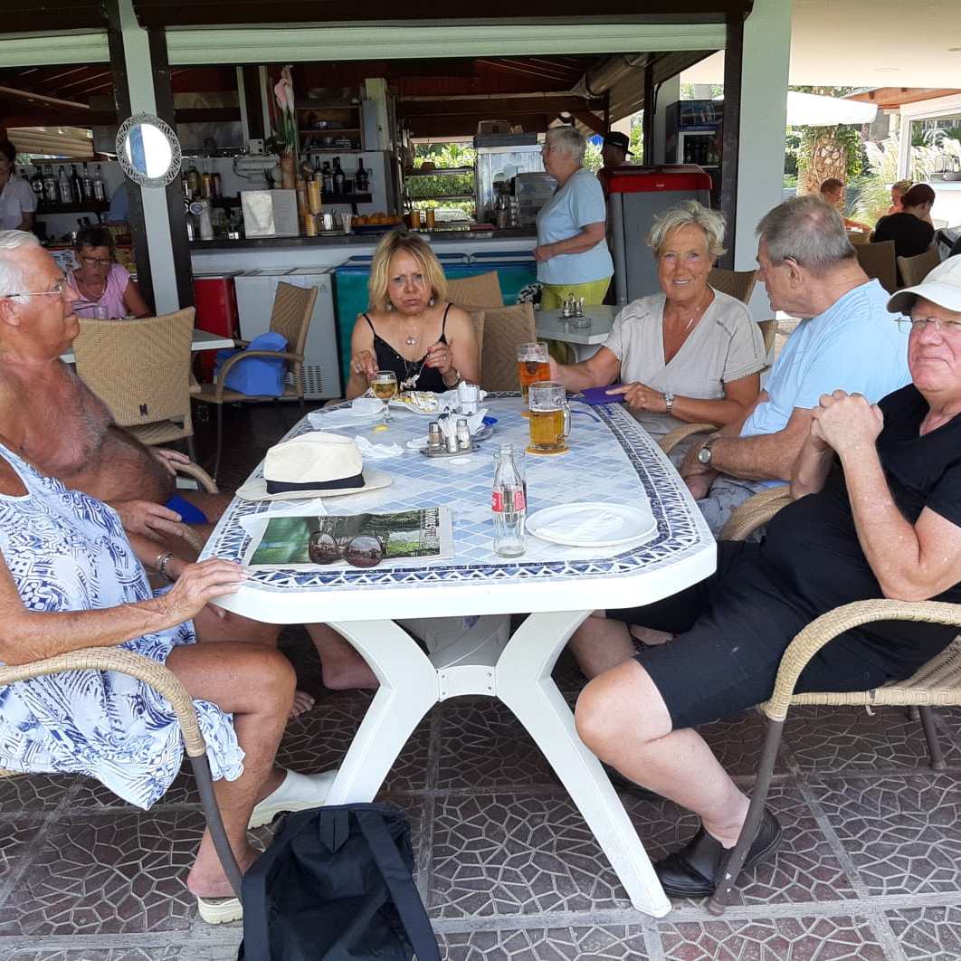 We zijn met nog zes gasten goed aangekomen in het hotel. De andere 33 gasten komen zaterdag aan. We hebben een tafel gereserveerd voor het diner en maken verder kennis onder het genot van heerlijke gerechten en een lekker drankje.