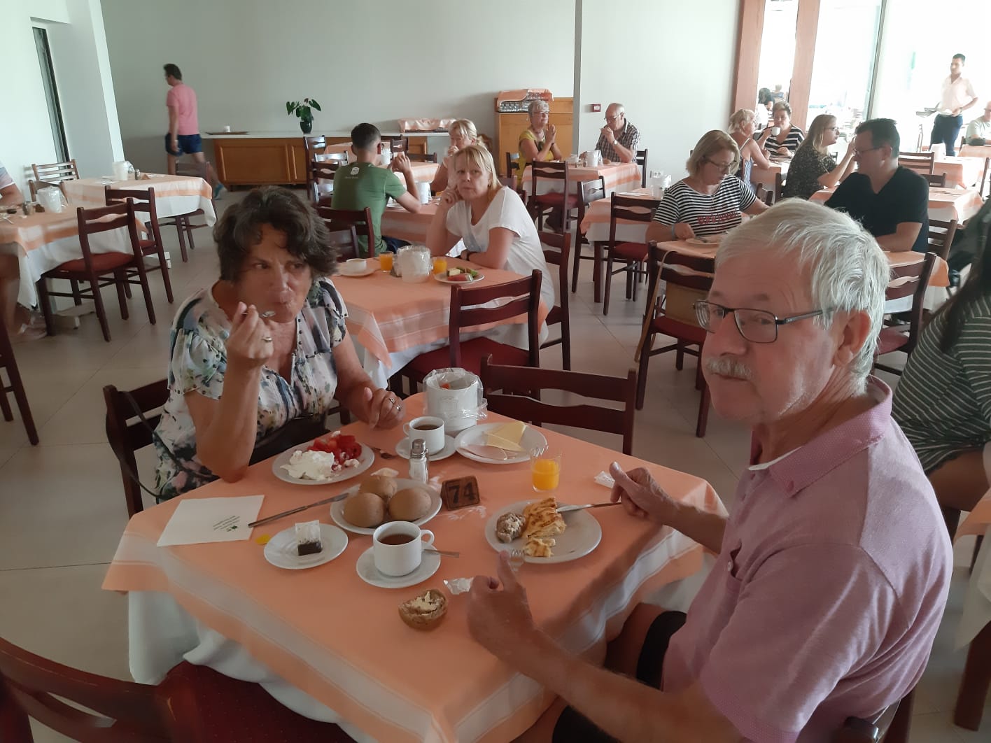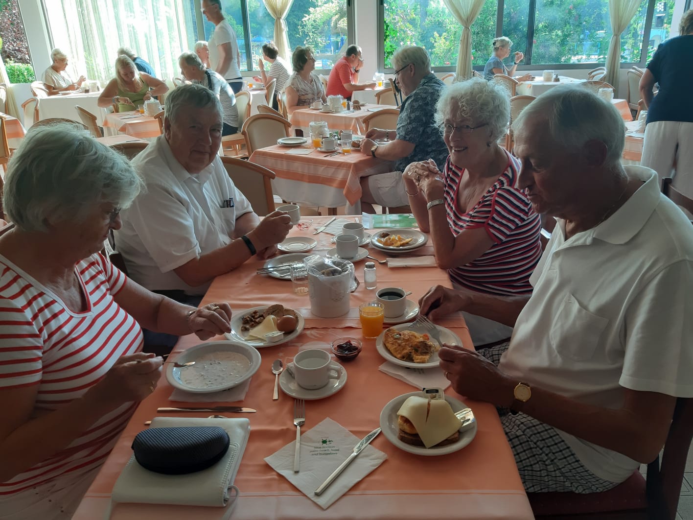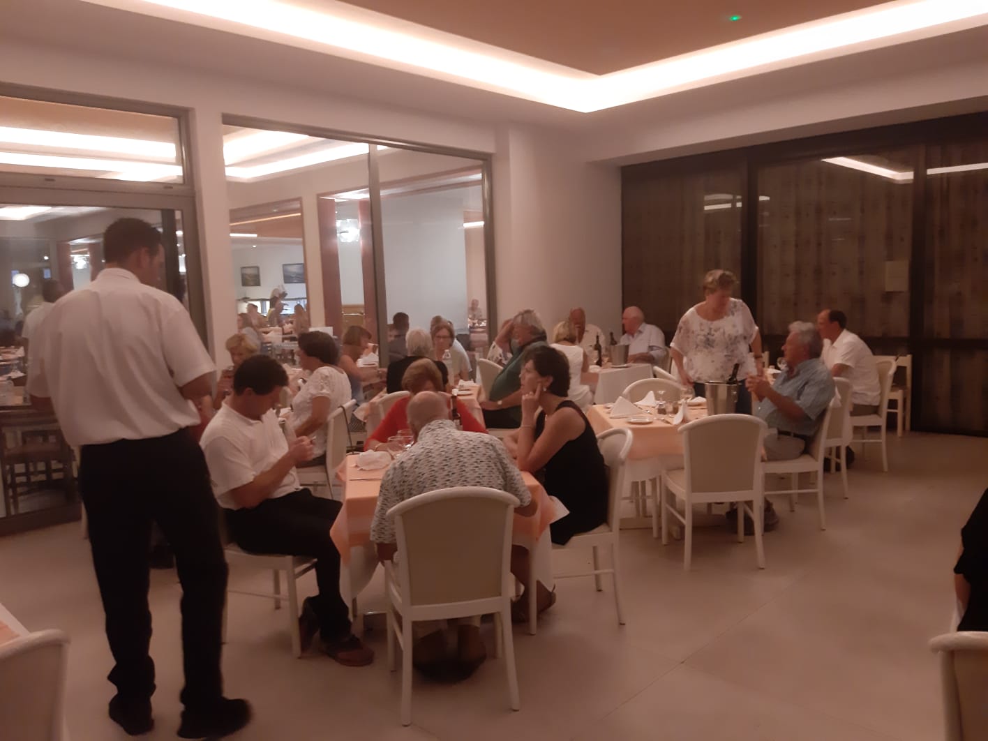 We zijn met nog zes gasten goed aangekomen in het hotel. De andere 33 gasten komen zaterdag aan. We hebben een tafel gereserveerd voor het diner en maken verder kennis onder het genot van heerlijke gerechten en een lekker drankje.