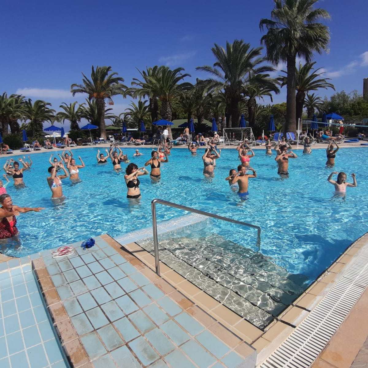 De meeste gasten zijn te vinden aan het zwembad en bij de zee. Heerlijk luieren met een boekje of een puzzeltje. Ook aan de gym hebben er meegedaan vandaag.