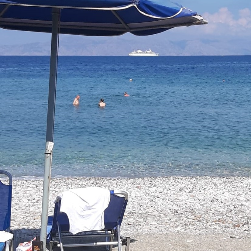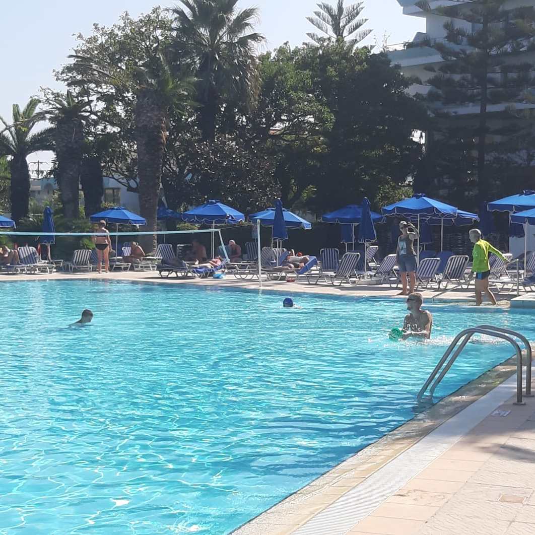 We zien aardig wat gasten aan het zwembad en bij de zee. Niet vervelend om op deze wijze te acclimatiseren aan de omgeving, de gemiste zon en temperatuur. Nederland kampt vandaag weer met regen en somberheid. Het weer op Rhodos ziet er in ieder geval de komende 14 dagen schitterend uit 🙂 .