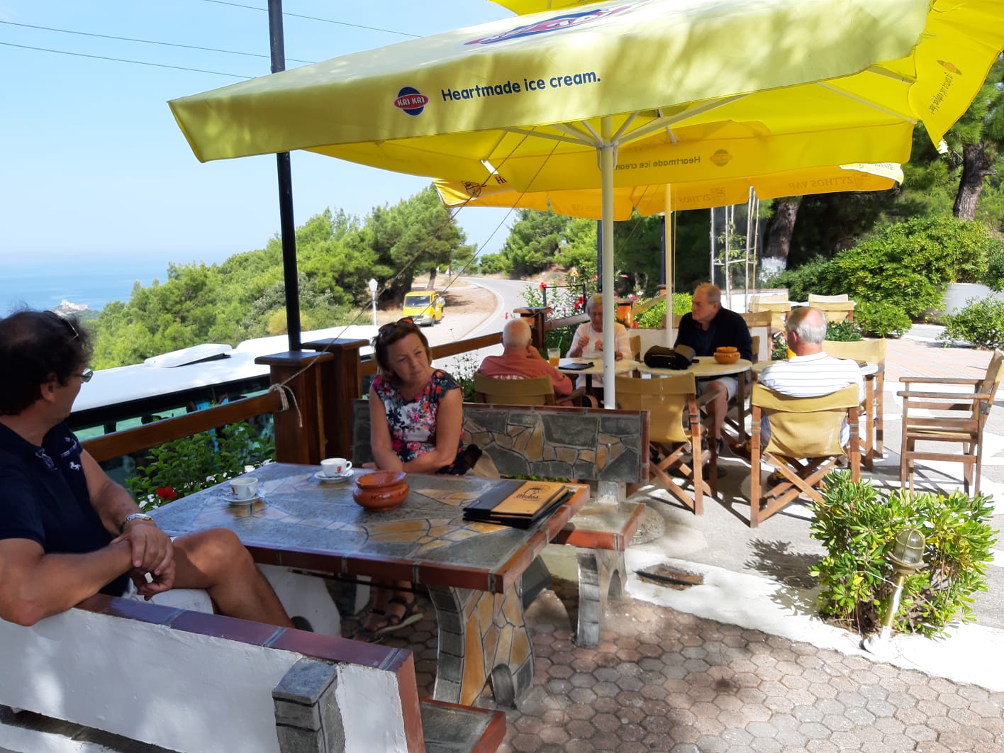 Na het ontbijt gaat ieder zijn/haar gangetje. In het voorbijgaan horen we dat het zwembad wordt opgezocht, het strand wordt geïnspecteerd maar ook dat Rhodos-stad bezocht gaat worden. Anderen met een huurauto gaan toeren over het eiland en belanden vast op een terrasje in een pittoresk dorpje.