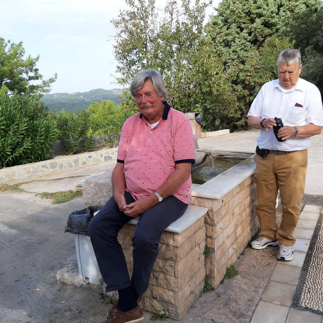 Na de lunch, o.a. verkrijgbaar in de beachhouse/-bar, is een groot deel van de groep te vinden in de ligstoelen bij het zwembad of aan het strand. De winkeltjes worden ook aangedaan nabij het hotel en sommigen zijn op pad met de auto. Een leuk uitstapje is een bezoek aan Archeologisch Museum in Rhodos-Stad. Het ruim vijfhonderd jaar oude gebouw vormt een prachtig decor voor één van de belangrijkste musea van Griekenland. En ritje naar het wijnhuis Emery Winery is ook de moeite waard. In het dorpje Embonas is de grootste producent van Rhodos-wijnen gevestigd, Emery Winery. Je mag hier de wijnen gratis proeven. We spotten Piet in de namiddag bij het zwembad. Piet reist al aardig wat jaartjes met ons mee.