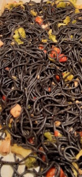 Na de maaltijd met onder andere zwarte spaghetti en inktvis gaan we naar de bridgezaal voor het spelen van de 8e competitieronde. De avond gaat snel, voordat je het weet zijn we al weer toe aan de uitreiking van de dagprijs. Rosey en Frido; van harte! Naar de uitslag.