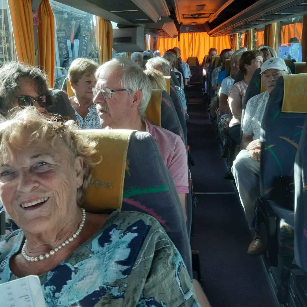 De terugweg is luisterrijk met mooie beelden van de omgeving. We zien hier en daar dat de vermoeidheid toeslaat. Niet zo verwonderlijk door al die indrukken van vandaag. Aangekomen in het hotel stellen we vast dat de rondrit een leuk uitstapje was met een leuke groep mensen.
