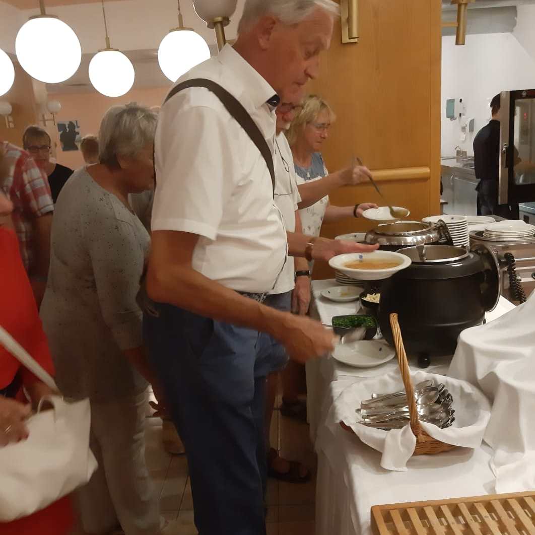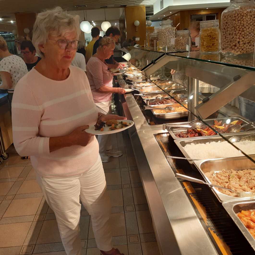 Het diner laat ons goed smaken. Onze groep eet allemaal in de serre, wel zo gezellig bij elkaar en goed voor de groepsbinding. Je merkt de nadere kennismakingen en uitwisseling van de dagbesteding. Erg leuk!
