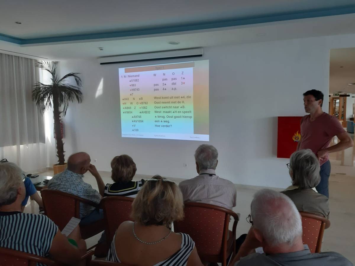 Vanmorgen is de vierde en laatste clinic van Enri gepland. De clinic gaat vandaag over zijn jonge jaren. Verrassende spellen uit belangrijke kampioenschappen worden getoond aangevuld met leuke anekdotes over bekende bridgespelers. We sluiten af met een groot applaus; we hebben genoten en veel geleerd van de clinics deze week. Bedankt Enri! Naar het verslag.