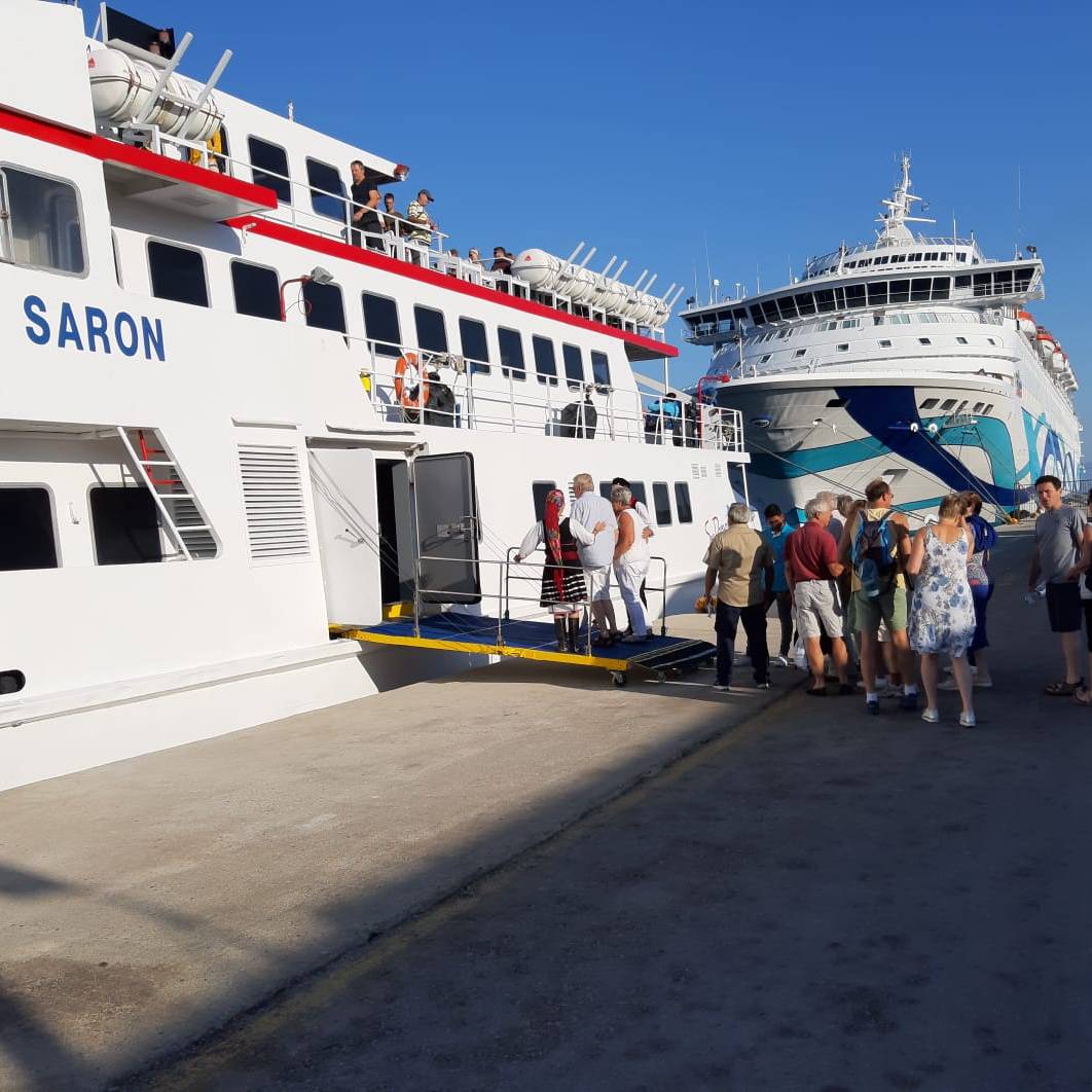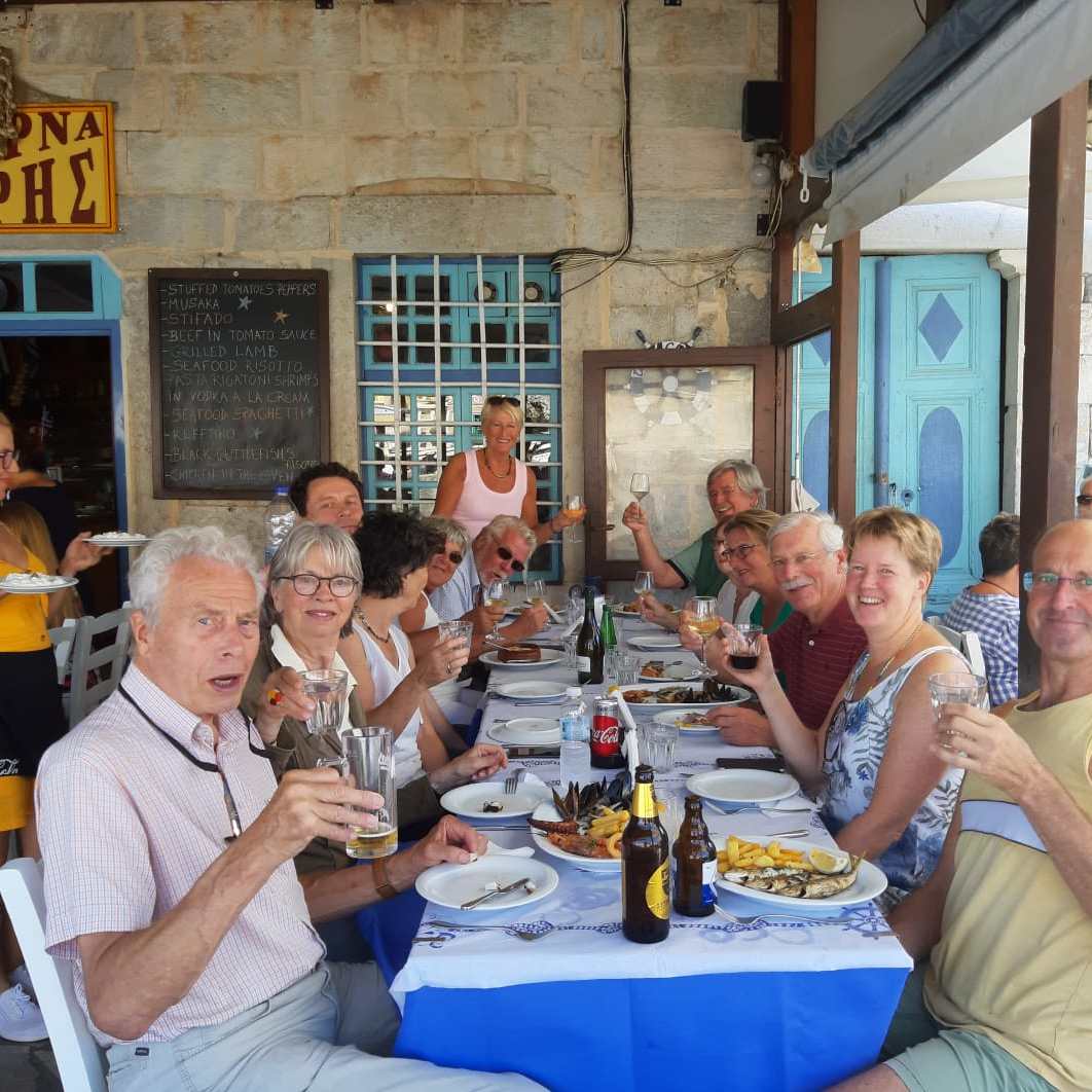 Vandaag maken we een leuke toer naar Symi, het eiland naast Rhodos. Het eiland staat bekend om zijn kleurrijke neoklassieke huizen, de charmante vissersboten, het traditionele sponsduiken en heerlijke visgerechten. Gelukkig wordt het een zonnige dag, de 26 graden gaan we wel halen. We hebben een heerlijke vaart. Aangekomen in Symi nemen we een heerlijke lunch met elkaar. Hierna struinen we nog wat door de straatjes en steegjes.