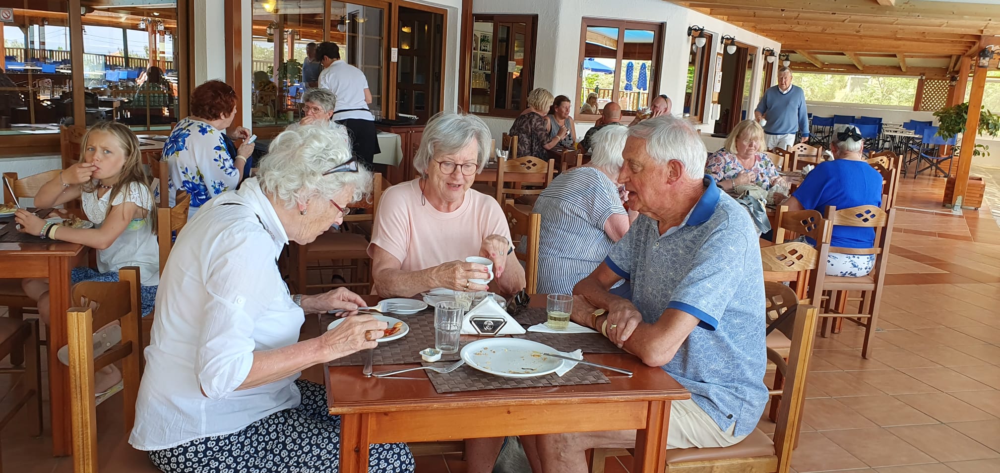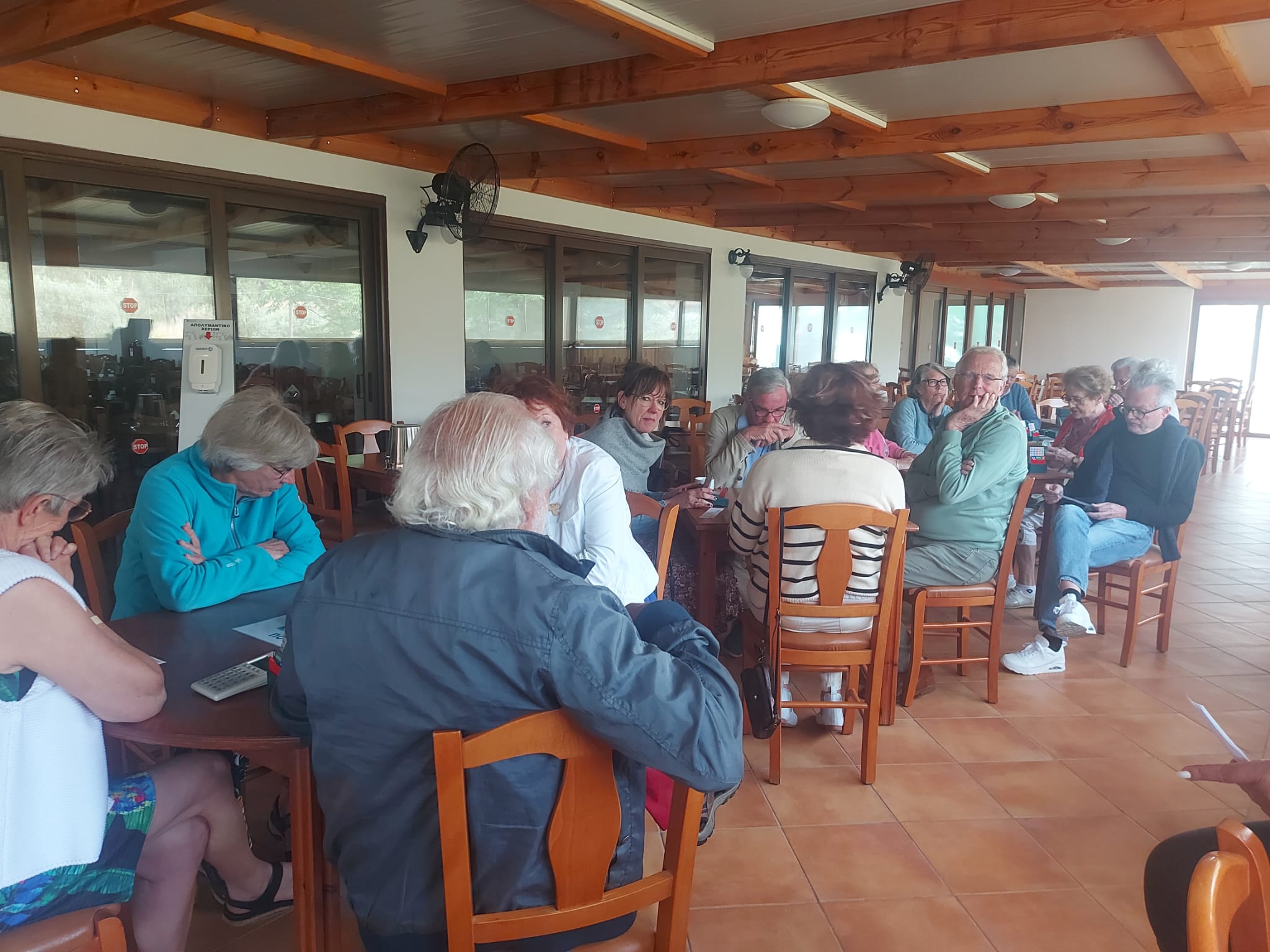 Met dank aan de kok en het bedienend personeel gaan we weer terug met de taxi. Naast het heerlijke eten wat met het cijfer 10 werd bekroond was het een heel gezellige middag. We hebben een leuke groep!
