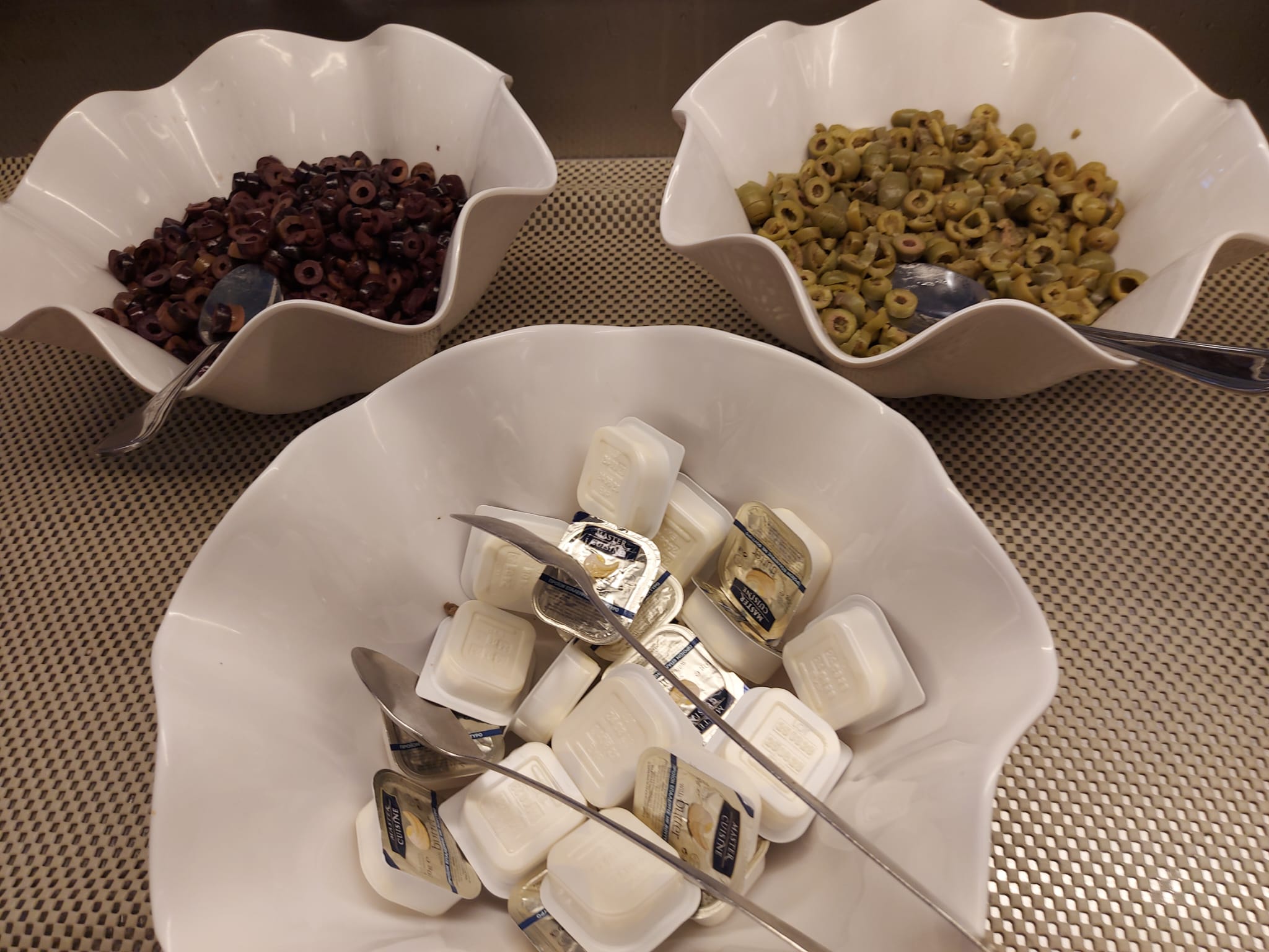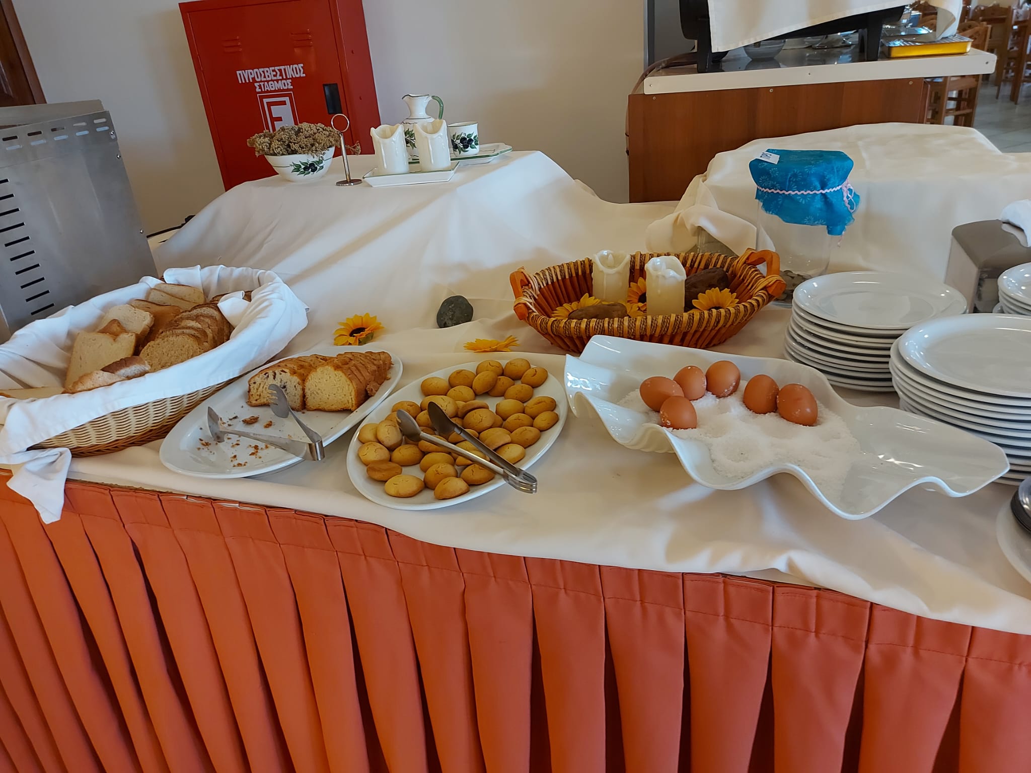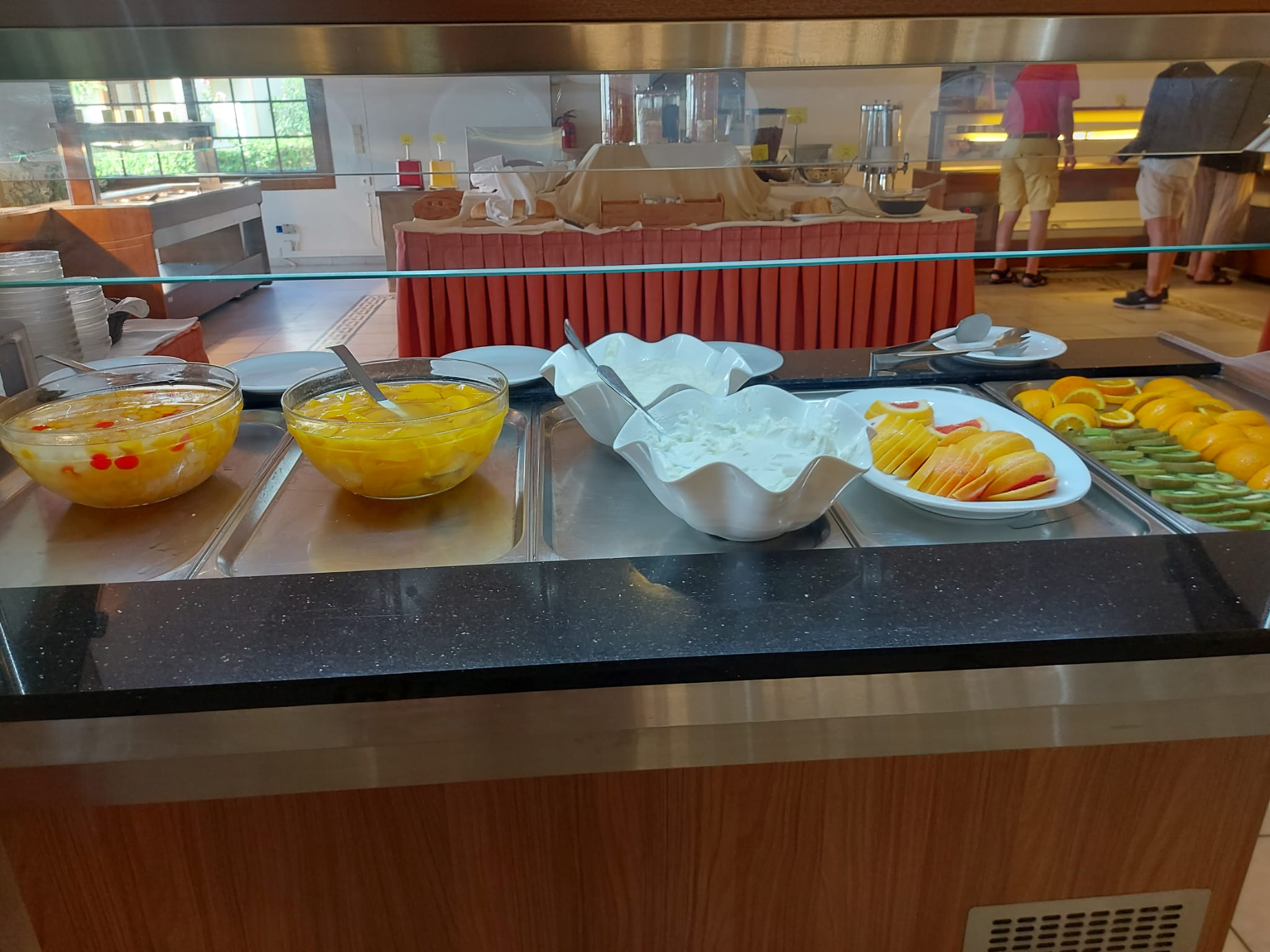 Op naar het ontbijt. Een overvloed aan lekkere dingen staan op het buffet. Gebakken ei, scrammbled egges, omelet, gekookt ei, kaas, olijven, worstsoorten en natuurlijk Griekse yoghurt. Ontbijt wordt als goed tot uitstekend beoordeeld.