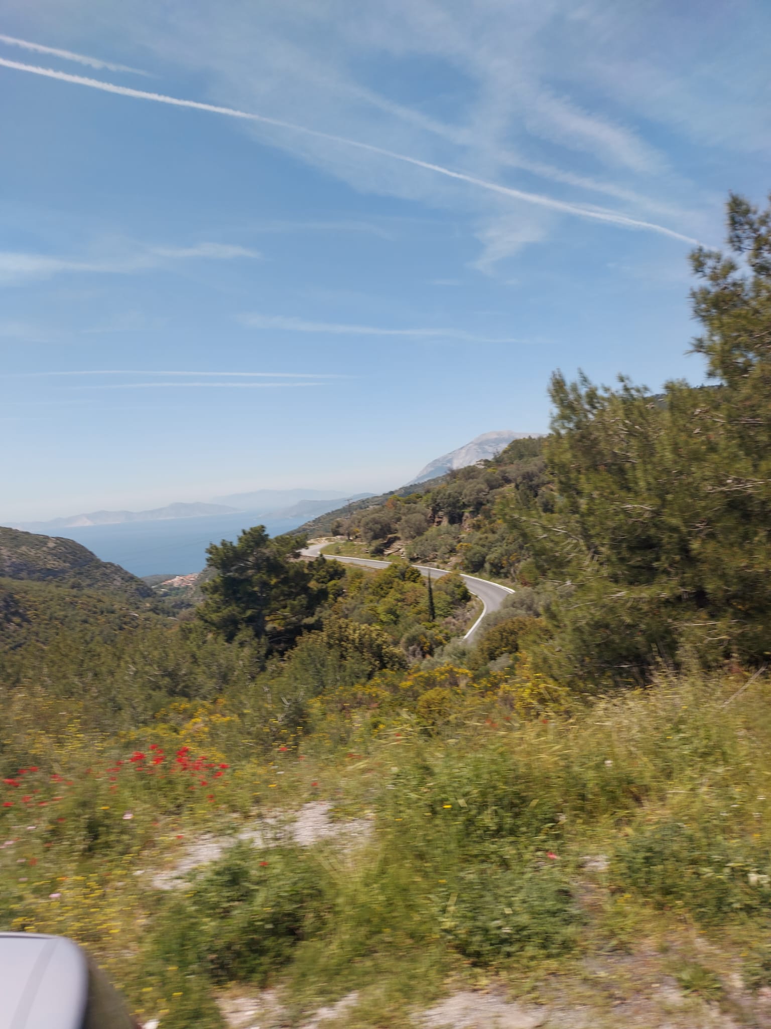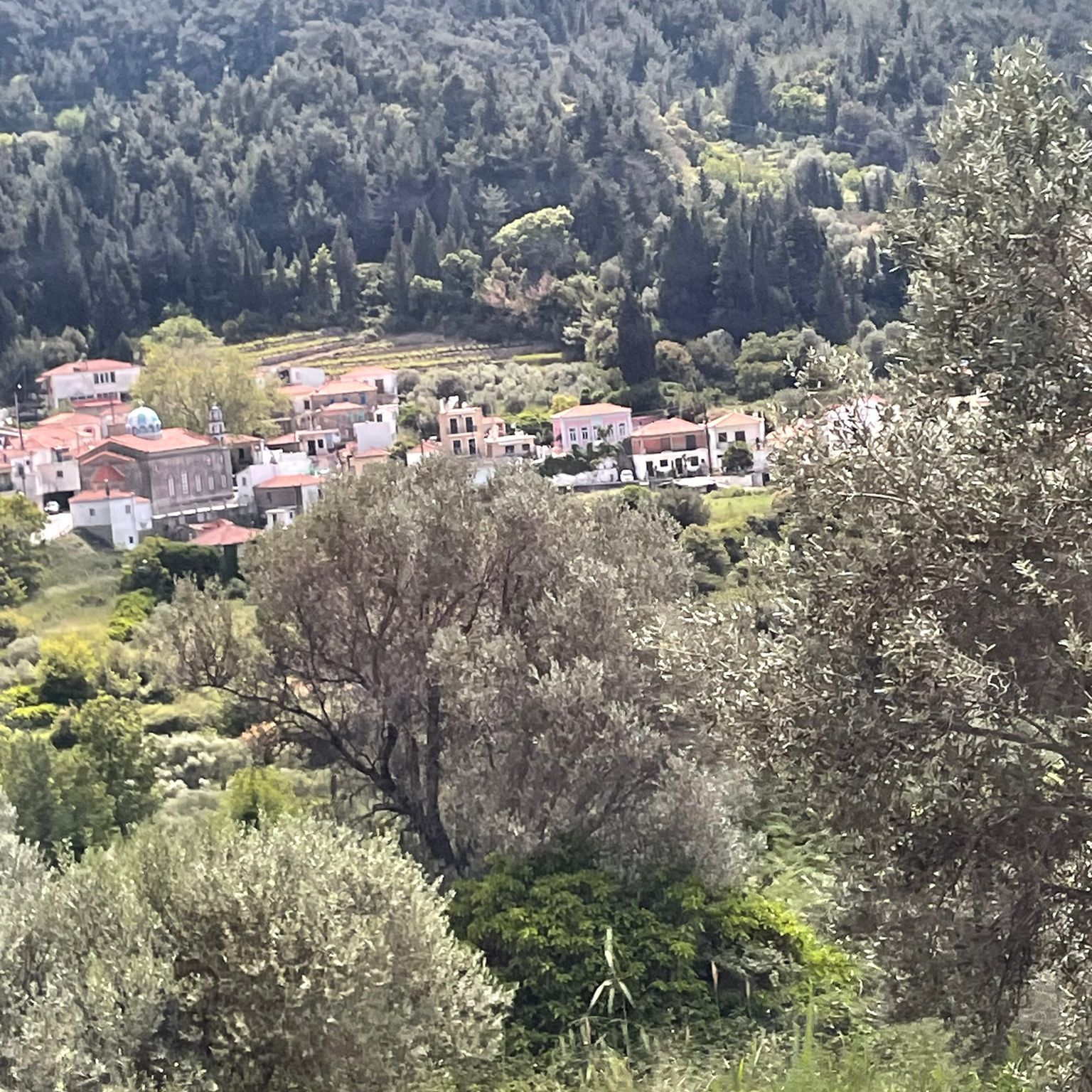 Vandaag ging Haas alleen op pad met de auto. Zij reed naar Karlovassi, vervolgde haar weg naar Potami en daarna naar het hoogst gelegen dorp op het eiland; Kosmadei. Kosmadei is een klein, gemoedelijk en vriendelijk dorp waar de tijd lijkt te hebben stilgestaan. Niemand onderweg tegengekomen, prachtige natuur en uitzichten. Dan kijk je gek op als je het Heinekenplein tegen komt. Aan het einde van dit verslag meer over de dorpjes Karlovassi en Potami.