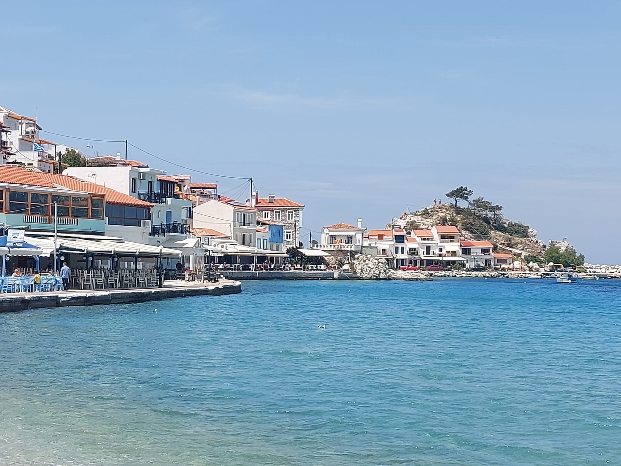 Een aantal gasten is vertrokken naar het dorpje verderop; Ormos. In het haventje liggen visserskotters, kleine motorboten en kleine cruiseschepen voor dagexcursies. Ormos (eigenlijk Ormos Marathokampou) heeft een gezellige wandelboulevard. Een lekkere lunch bij een van de tavernes mag je niet missen.