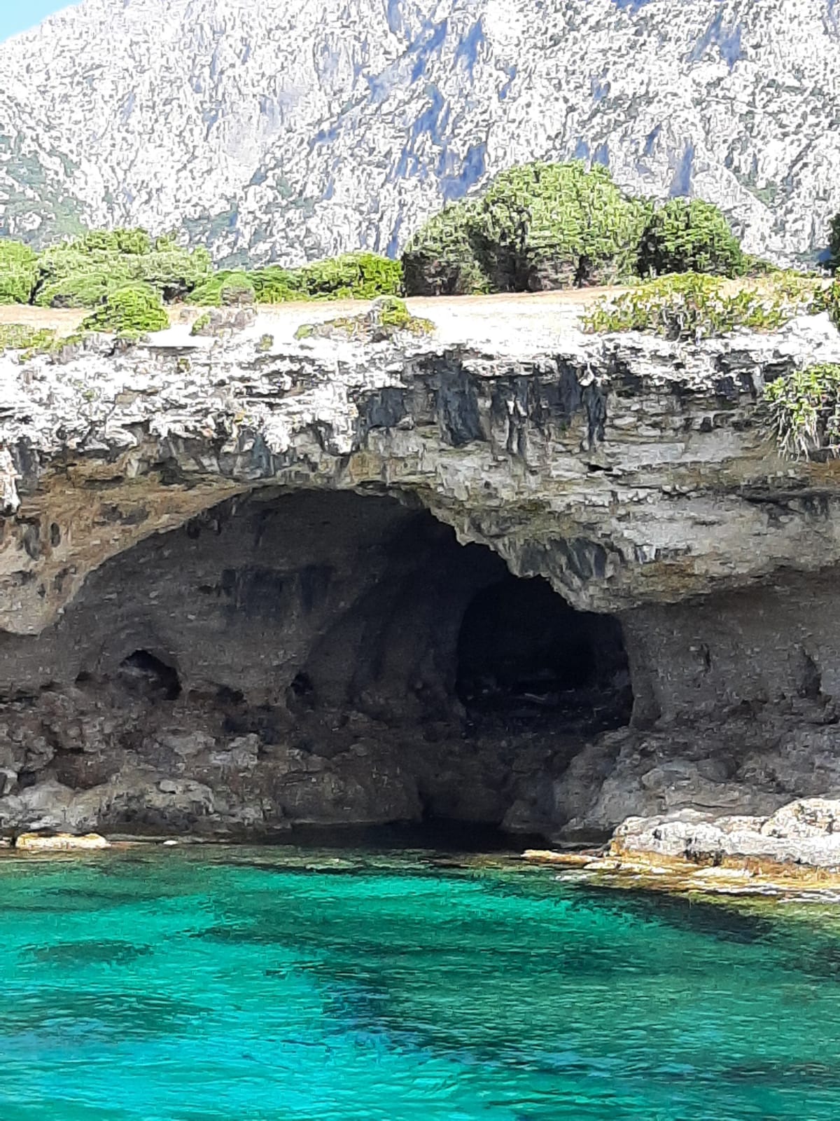 Vanochtend vertrokken we met de taxi naar Pythagoris Cave. Onze heel aardige chauffeur was dezelfde van gisteren terug naar resort van de lunch. Hij vertelde honderduit en stopte vaak uit zichzelf zodat ik foto’s kon nemen. Ook vertelde hij dat er Grieken waren die dachten dat de grot van Pythagoris eigenlijk hoger had gelegen, maar deze zou dan nog ontoegankelijker voor publiek zijn geweest. Hij bracht ons tot de trap waar ook een restaurantje is. Daarna nog best een heftige beklimming van 10-15 minuten met niet altijd leuning en zeker op het einde een groot hoogteverschil tussen de treden. De grot zelf is heel poreus met vele grotten, waar ook veel water opgeslagen wordt als het langdurend regent. Er zijn ook vele gangen naar de zee, maar dat kun je alleen kruipend doen en is verboden.