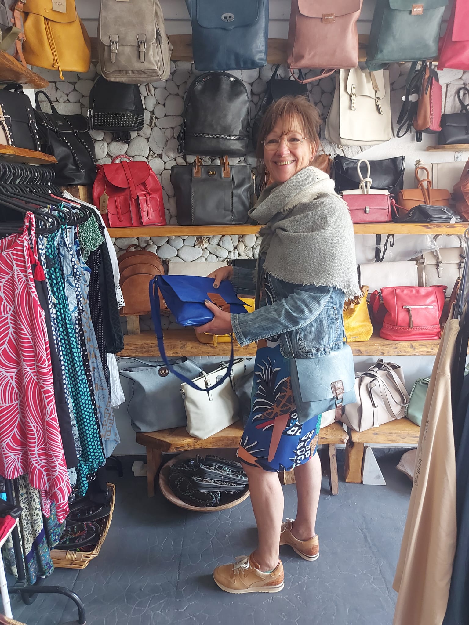 De ochtend begint wat bewolkt en fris. We ontbijten voor het eerst bijna allemaal binnen. Wat kun je nu beter doen dan shoppen in de ochtend. Cadeautjes kopen voor de oppas van het huis, voor een zus of voor de kleinkinderen. Oh ja niet te vergeten natuurlijk; leuke jurkjes kopen om zelf te dragen. Op Rhodos was een winkeltje van het Italiaanse merk Sandra Fellini erg populair. Hier hebben we ook een winkeltje gevonden waar dit merk wordt verkocht. Anja en ik gaan op pad en komen onderweg veel van onze gasten tegen.