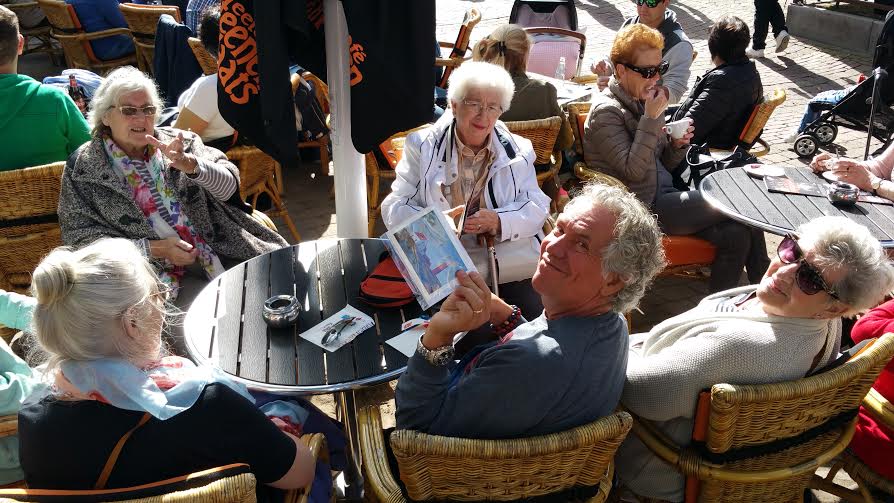 Het zonnetje staat al te schijnen wanneer we gaan ontbijten. Vandaag vertrekken we naar Texel met de bus (overkant hotel) waarmee we de boot opgaan en die ons vervoert naar de eerste stop Den Burg. Naast het vervoer met de bus wordt het eiland ook aangedaan met de fiets. Het weer leent zich hier uitstekend voor. Aangekomen in Den Burg met een gezellig winkelbestand lopen we door de straatjes en staan regelmatig stil om het koopwaar te bekijken. Een terrasje wordt natuurlijk aangedaan :).