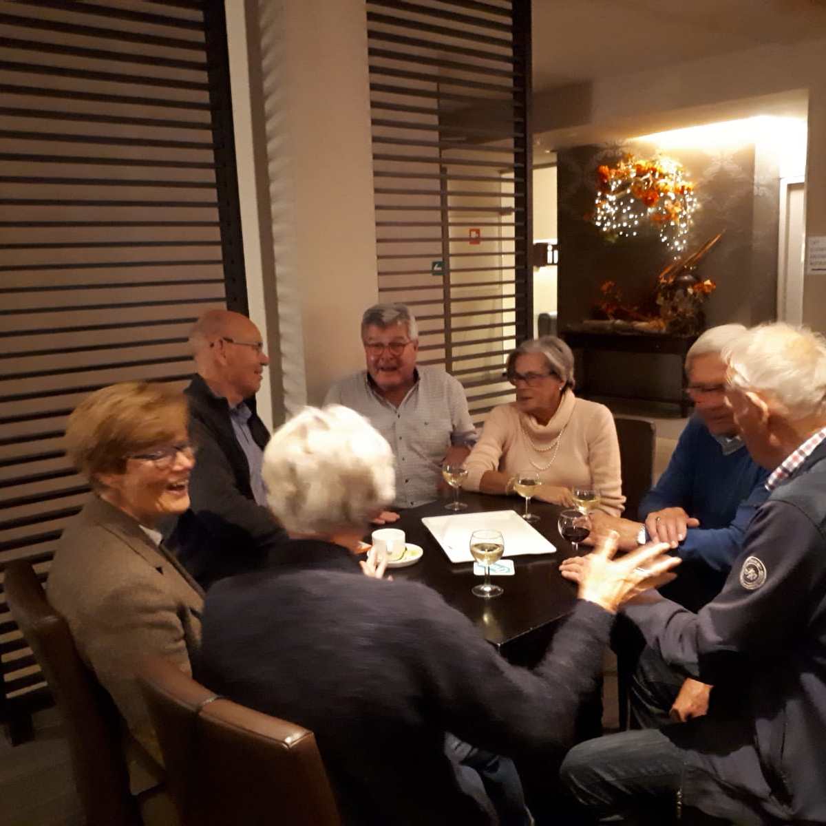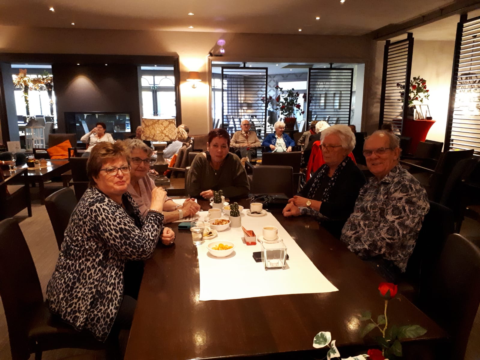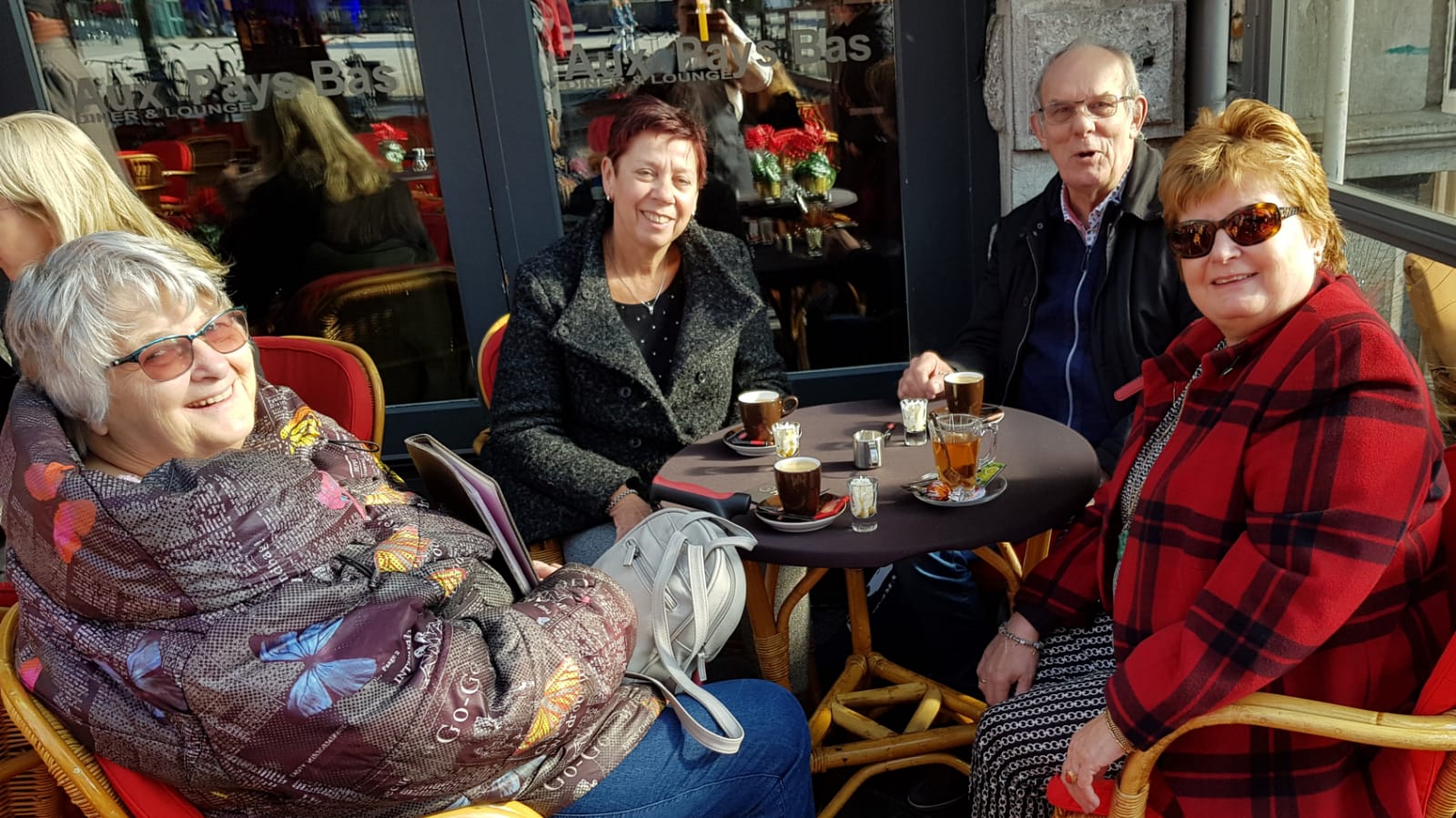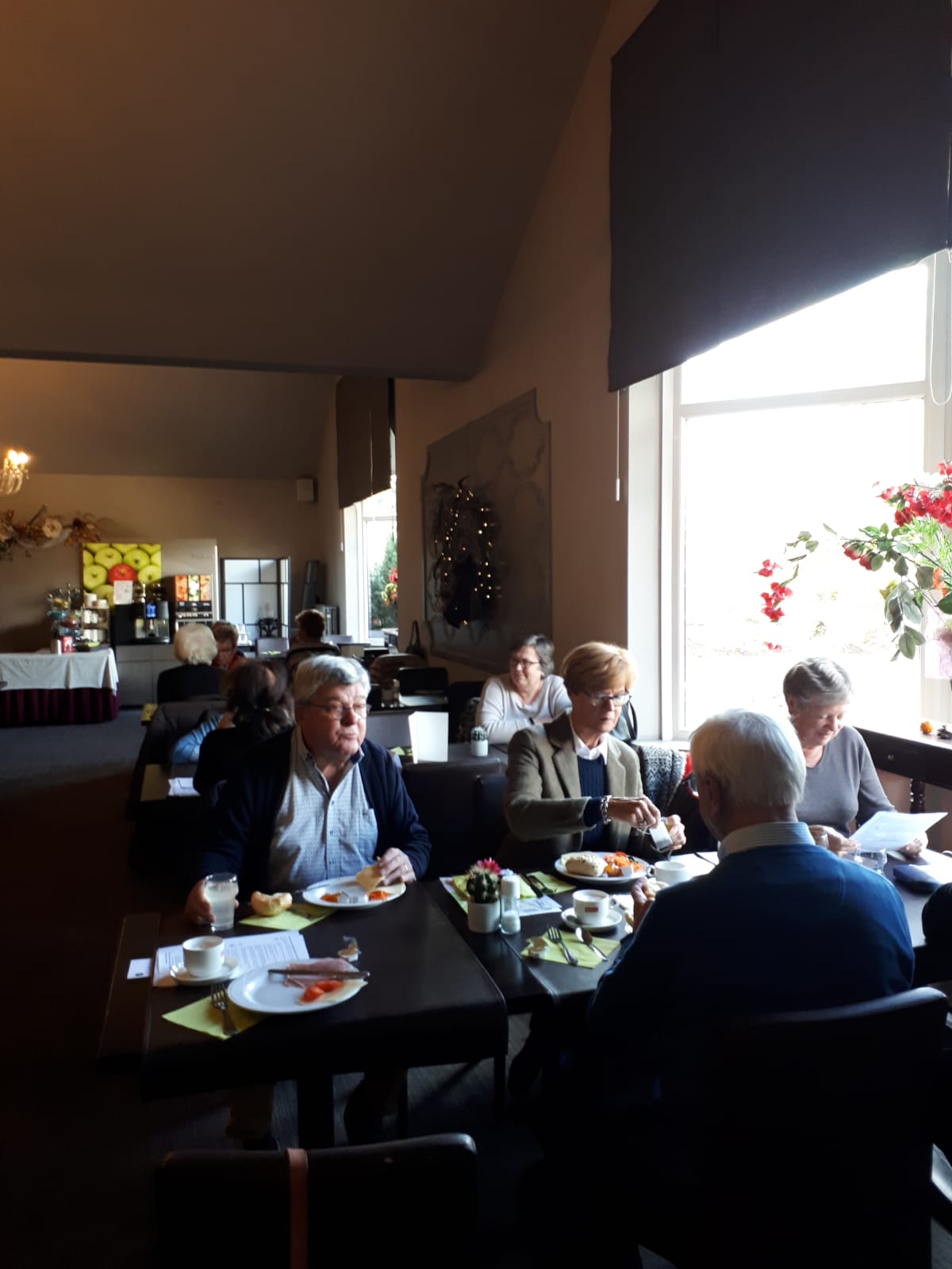 Terug in hotel komen we de Maastrichtgangers tegen die de bus hebben genomen. Even geslenterd over het Vrijthof maar het snijdende windje maakt dat ze terugkeren naar het hotel en op zoek gaan naar het “zwarte wief”. Onder het genot van thee met vlaai.