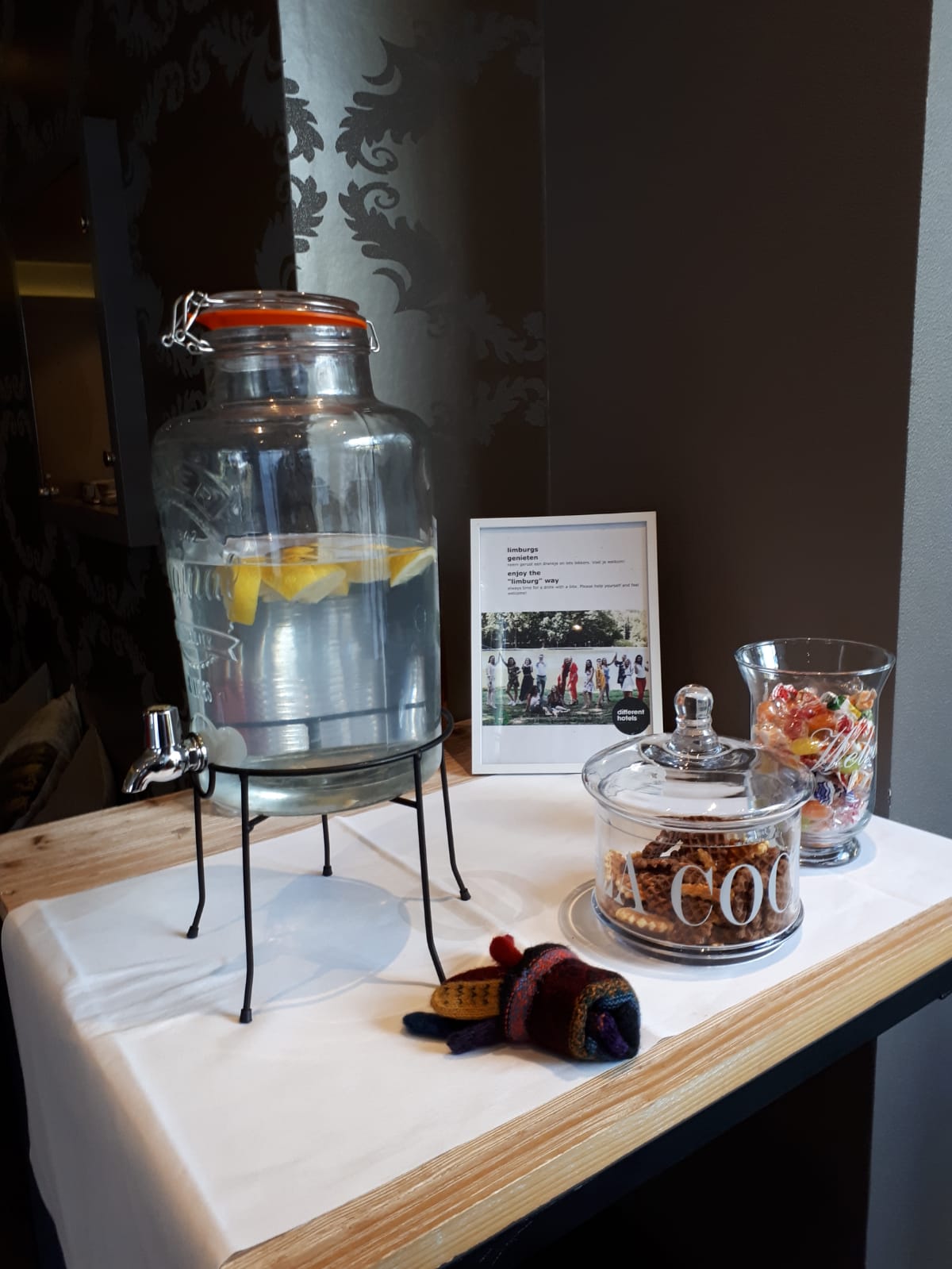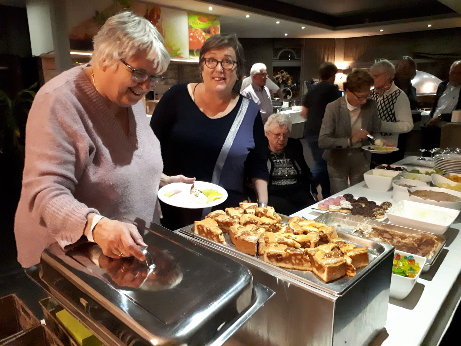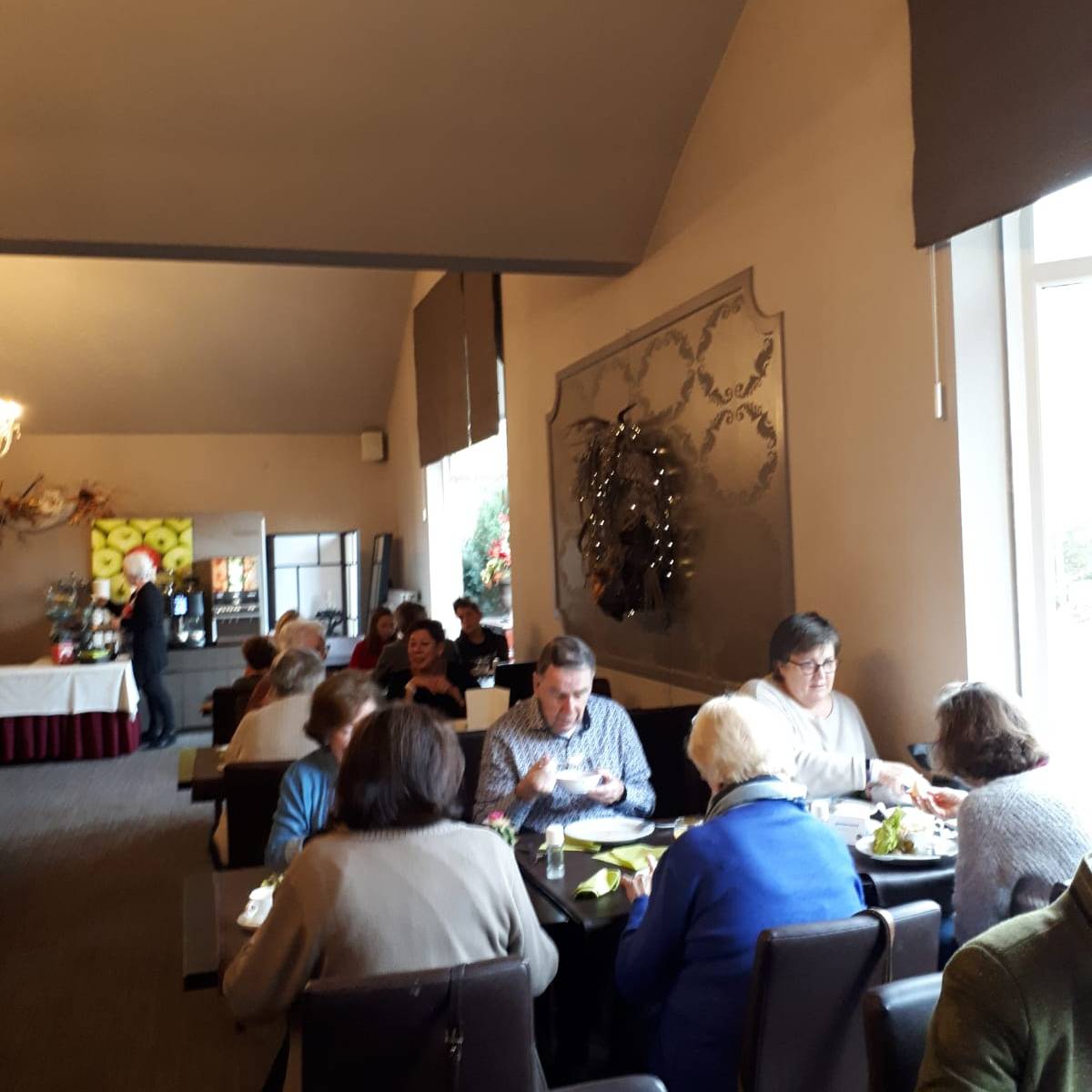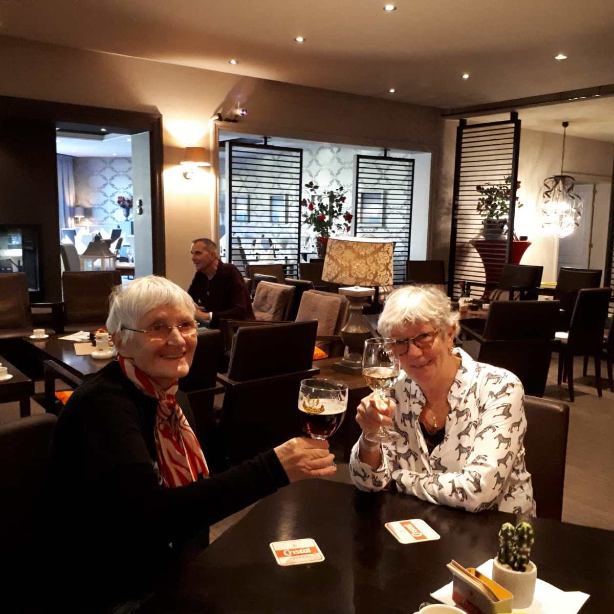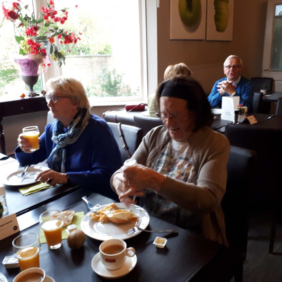 Terug in hotel komen we de Maastrichtgangers tegen die de bus hebben genomen. Even geslenterd over het Vrijthof maar het snijdende windje maakt dat ze terugkeren naar het hotel en op zoek gaan naar het “zwarte wief”. Onder het genot van thee met vlaai.