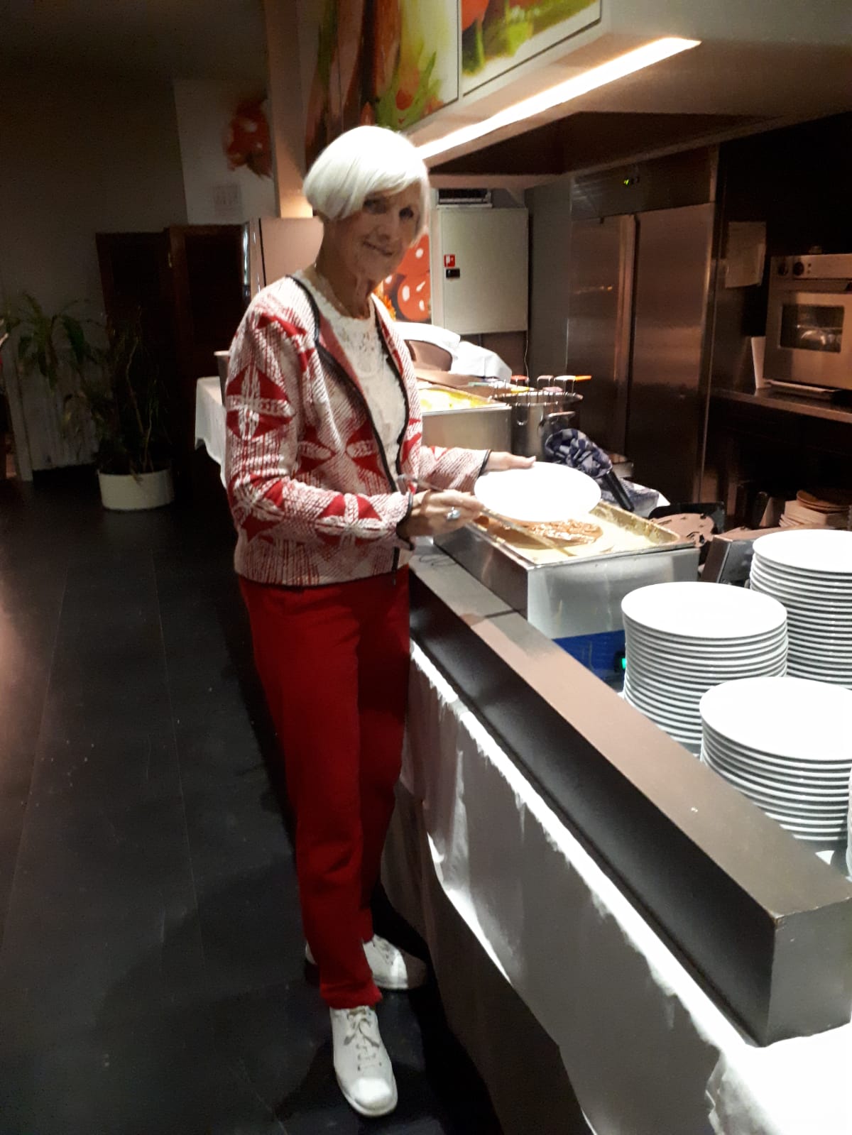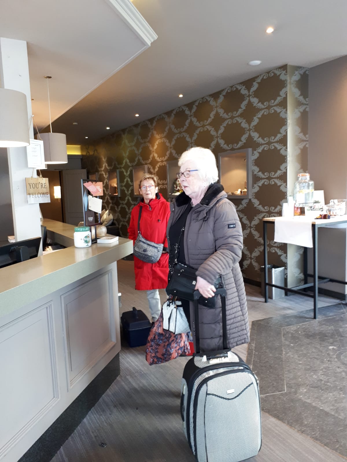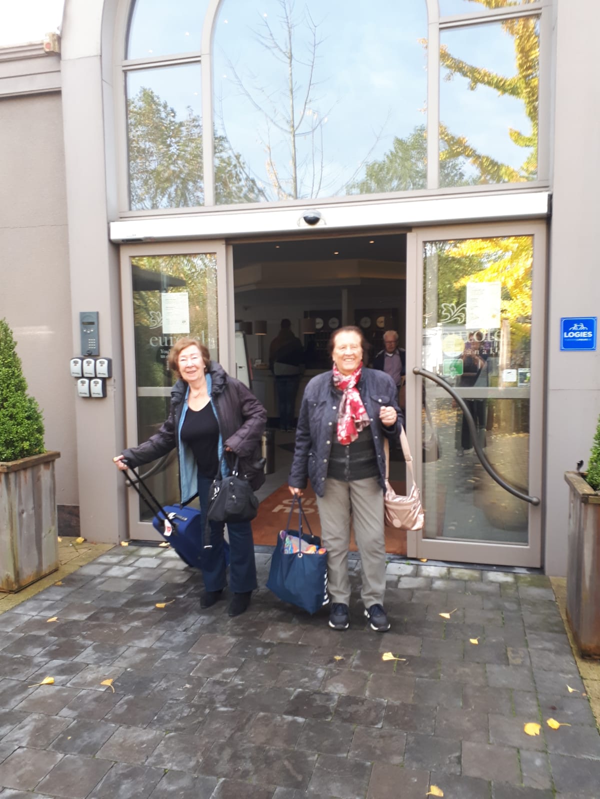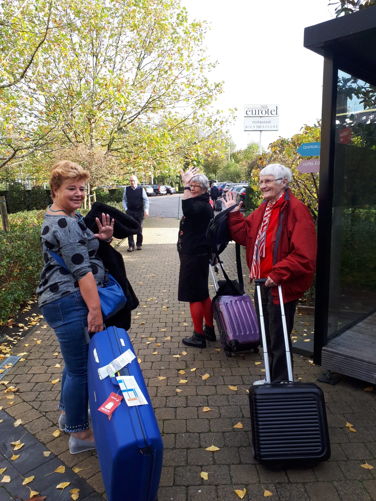 Na een laatste ontbijt zijn de koffers gepakt. Handen worden geschud en wangen gezoend. Iedereen krijgt een wafel mee voor onderweg. Een geste van het hotel.