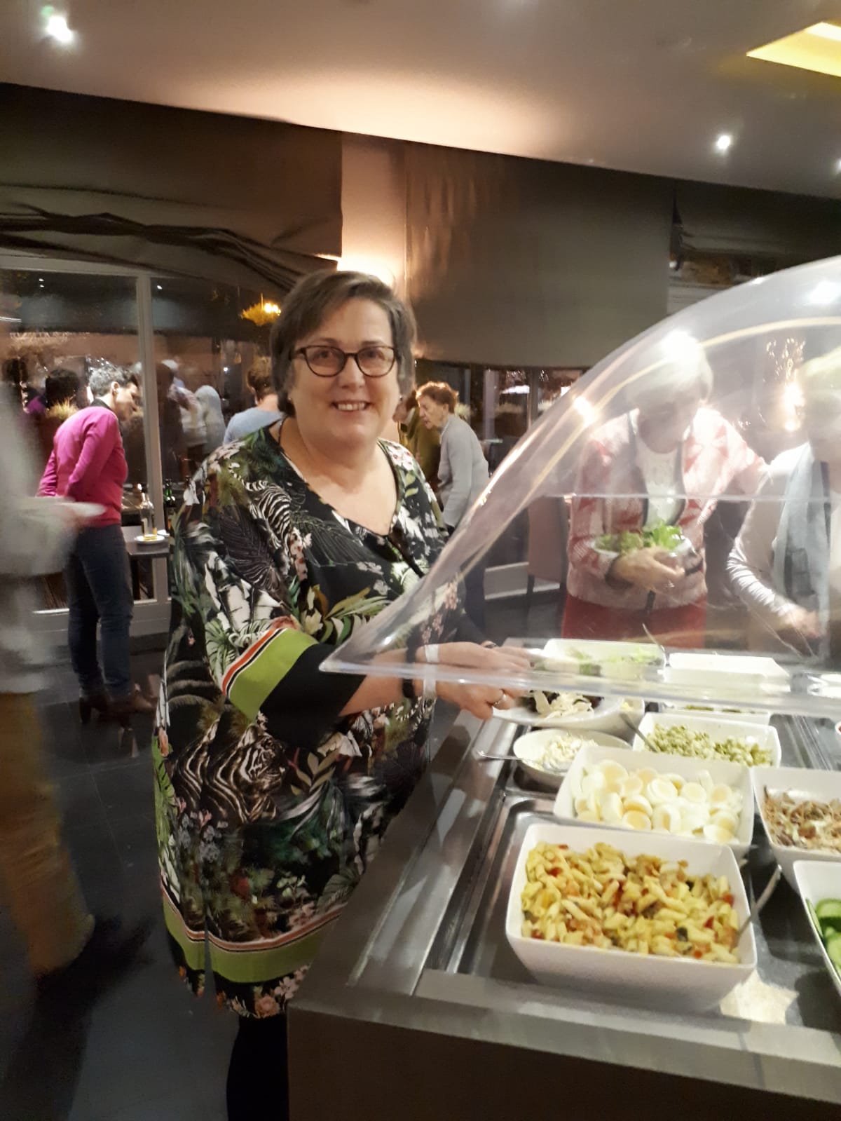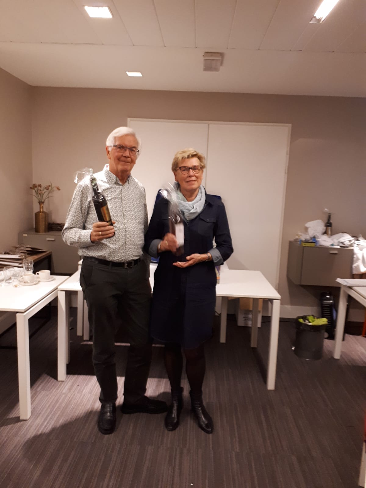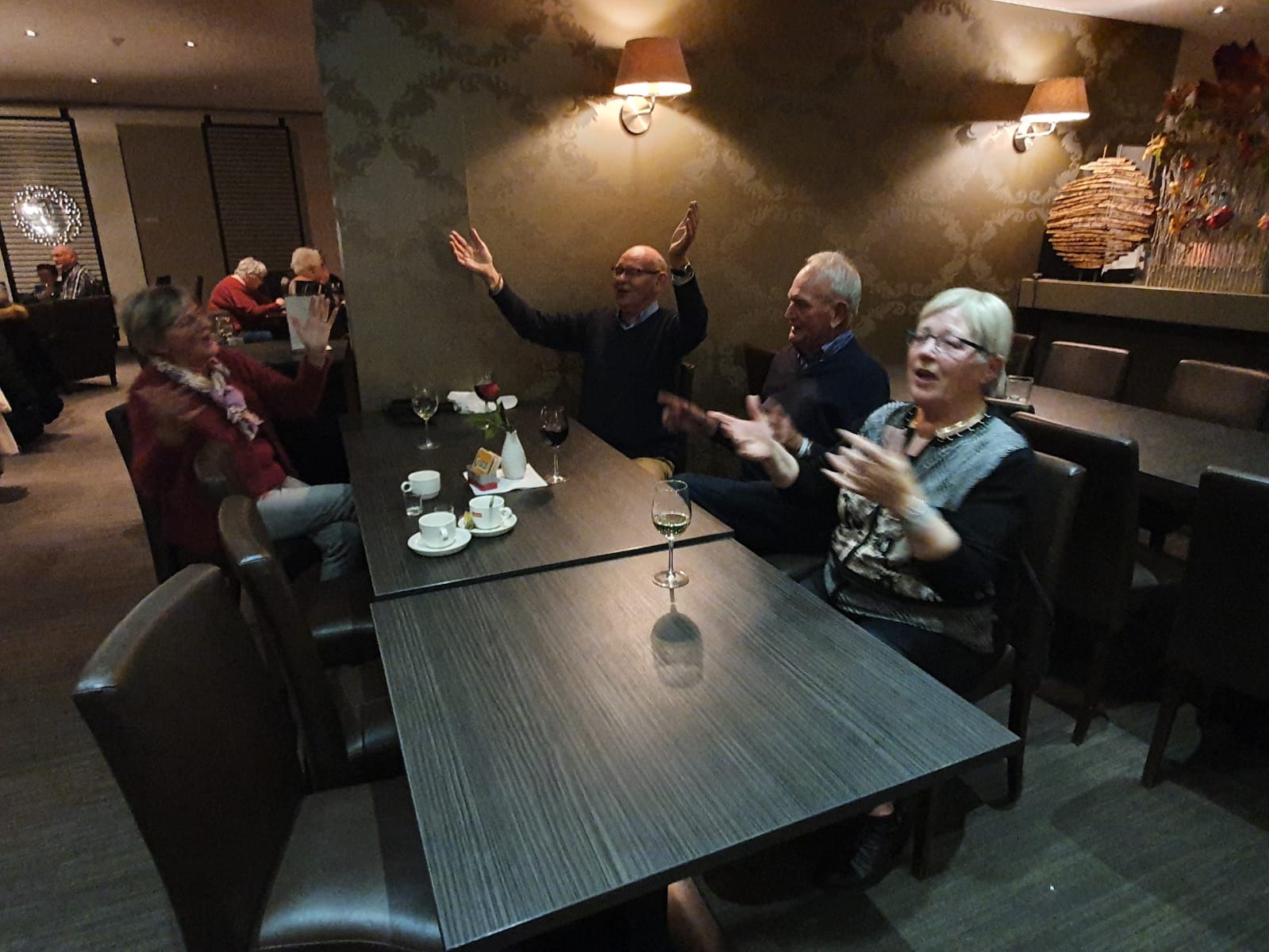 Tijdens het diner horen we dat ook Maastricht is aangedaan en onze fietsers Gerda en John hebben Maasmechelen bezocht. De zaal staat weer in vol ornaat klaar om te beginnen aan de derde ronde. De sfeer zit er goed in, we hebben een leuke groep. Na een gezellige bridgeavond feliciteren we Fanny en Jan met de 1e plaats. Naar de uitslag.