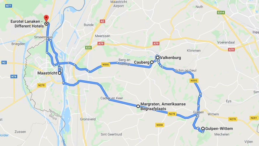 Via het gerechtsgebouw en de St. Lamberyuskerk in Maastricht zijn we op weg naar de Amerikaanse begraafplaats Margraten. Wij leven in vrijheid mede dankzij de Amerikaanse gesneuvelden die begraven liggen op de indrukwekkende begraafplaats Margraten.