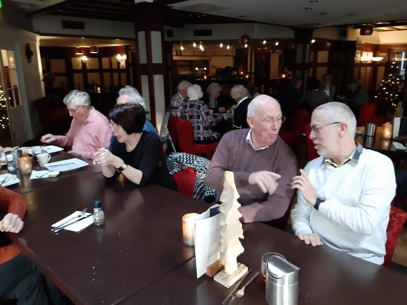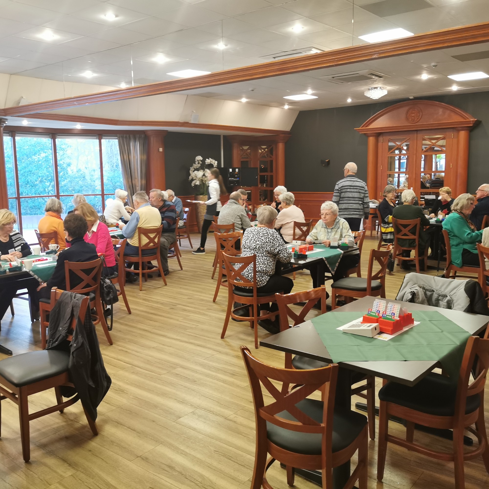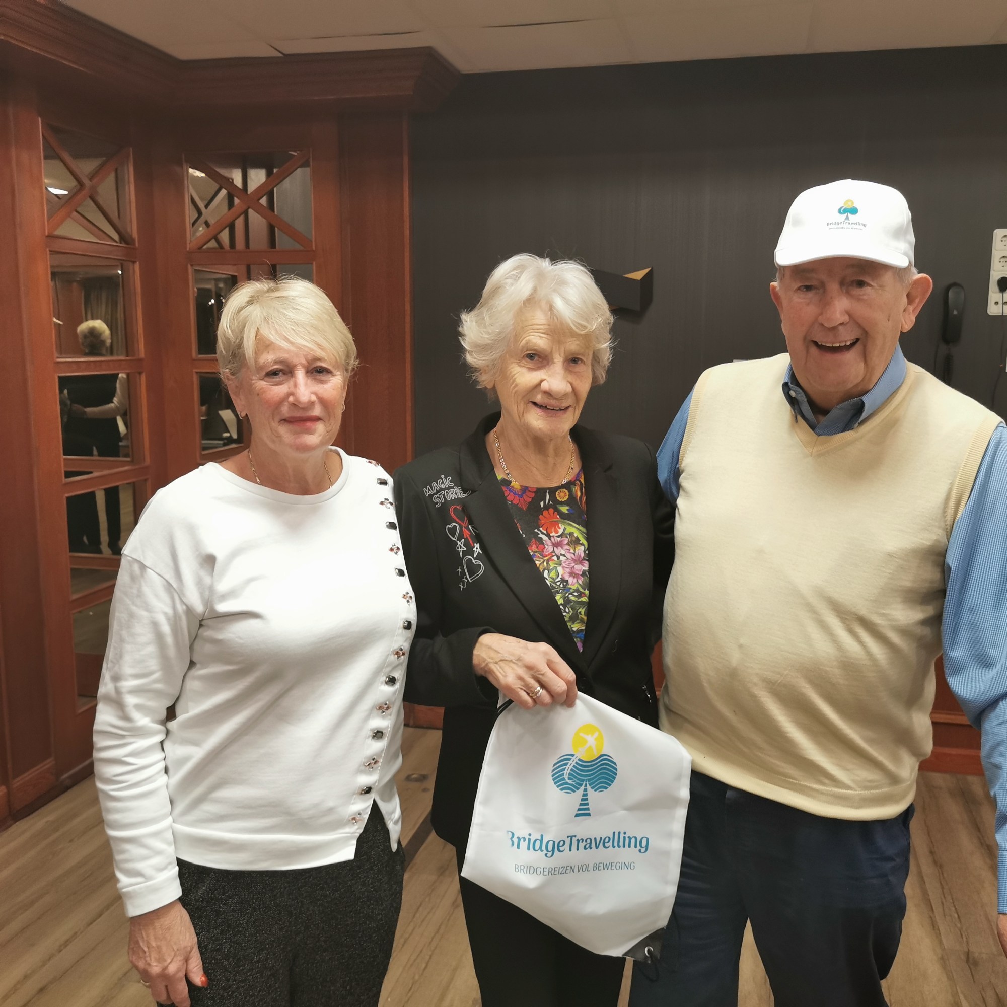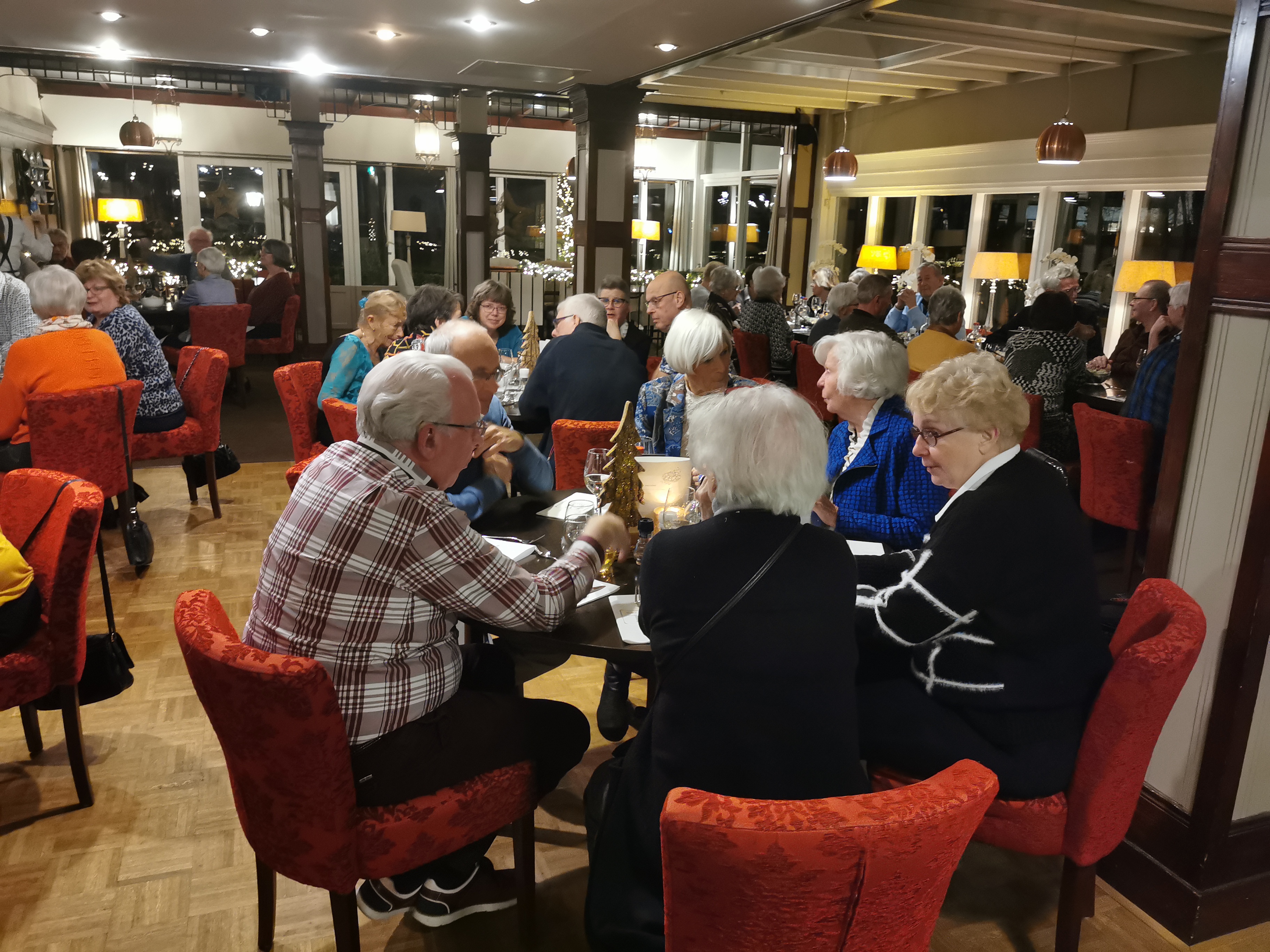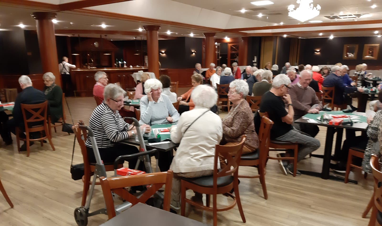 Van het restaurant schuiven we gezellig door naar de bridgezaal die overigens heel ruim, geruisarm en goed verlicht is. Na eerst koffie/thee en het loopbriefje te hebben gepakt starten we met de tweede ronde. De avond verloopt soepel maar bovenal gezellig. Tegen het einde krijgt iedereen een presentje uitgereikt; een paar heerlijke wintersokken.
