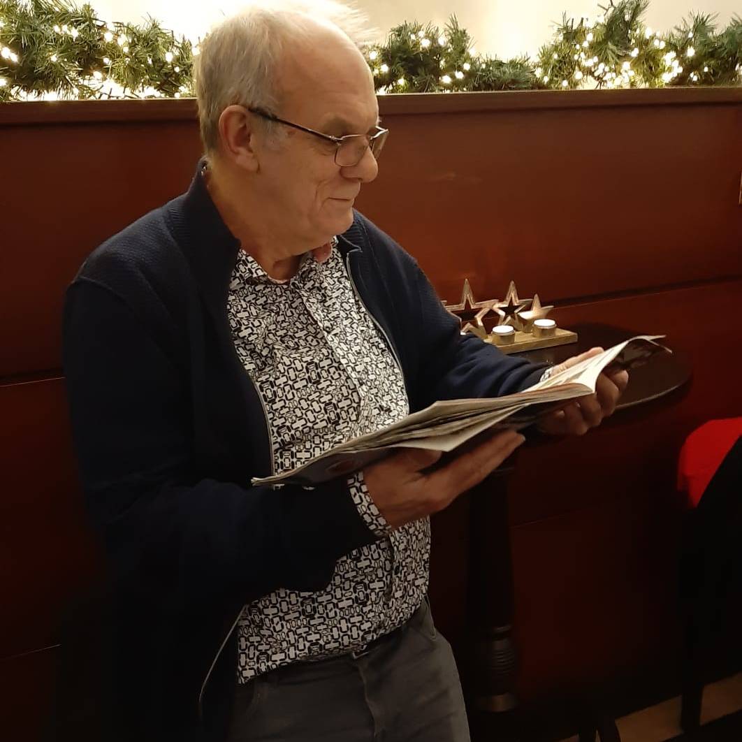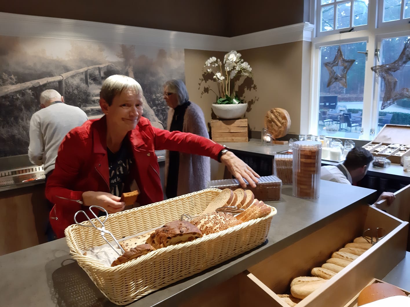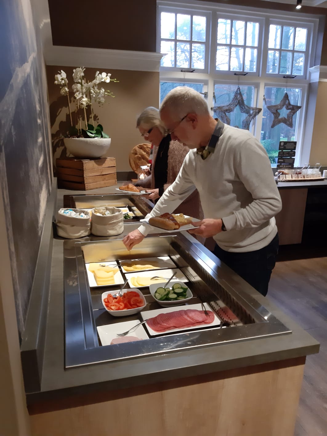We zien gasten vertrekken met de fiets en met de benenwagen. Het is koud maar gelukkig schijnt de zon volop, dat maakt weer veel goed. Enkelen gaan naar Zwolle voor een bezoek aan het museum en we zien veel gasten die binnen blijven, de lunch gebruiken in het hotel om vervolgens om 14.00 uur naar de bridgezaal te gaan voor de derde ronde.