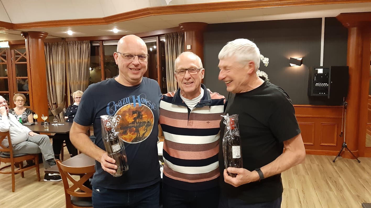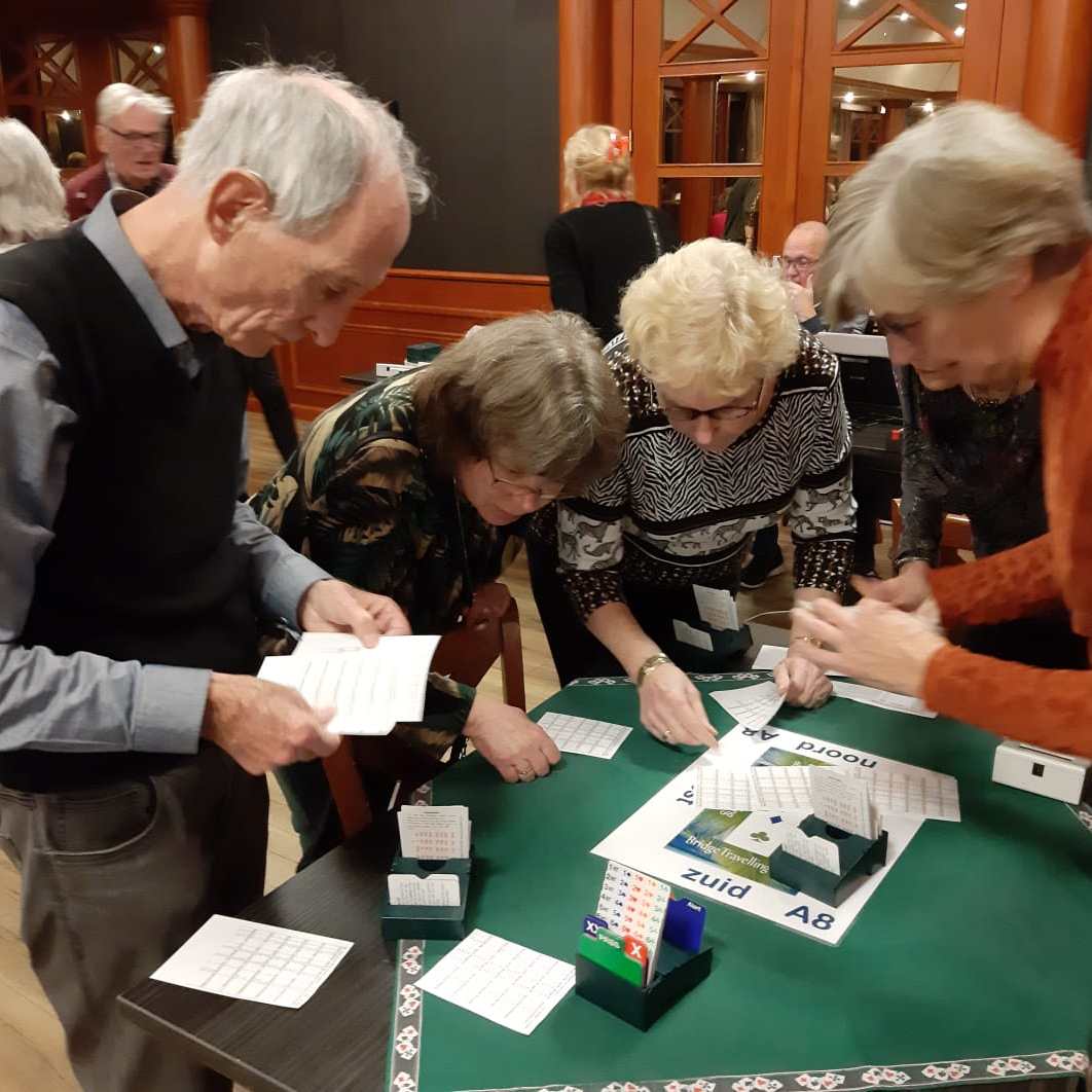 Na het bridgen zijn de persoonlijke uitslagen weer opgehaald en bleef het nog lange tijd “onrustig” , maar heel, heel gezellig aan de bar.