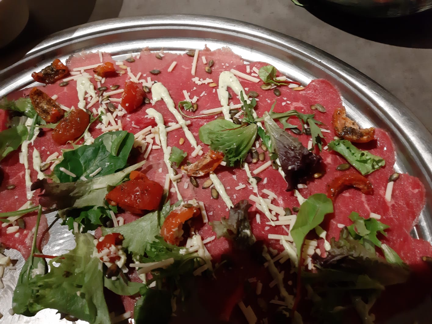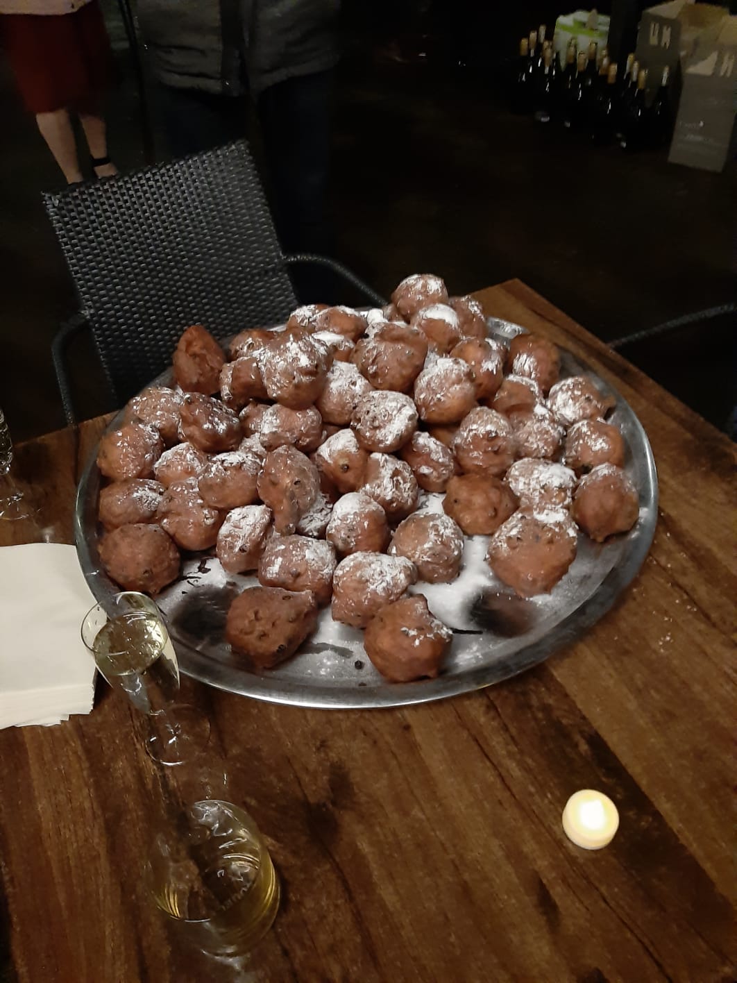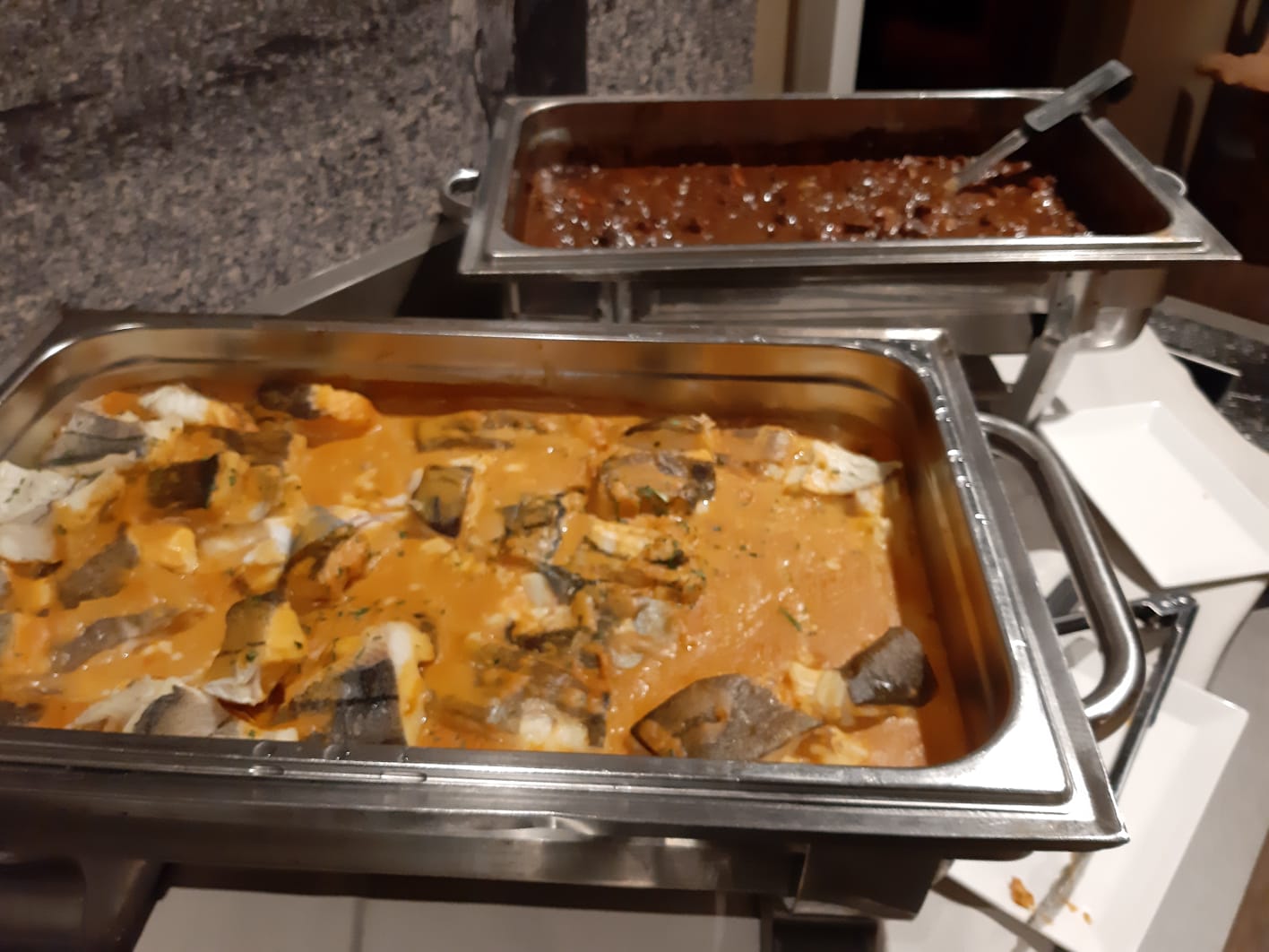 Rond 18.00 uur gaan we aan tafel. Het keukenpersoneel is vandaag niet voltallig wat te merken is aan het uitserveren van de gerechten. Geduld is een schone zaak. De afgelopen dagen heeft het personeel zeker krediet opgebouwd middels de goede service en de vriendelijke bediening. Hierdoor verzoenen wij ons met het tempo vandaag. Ondanks het voorgaande hebben we veel plezier gehad.