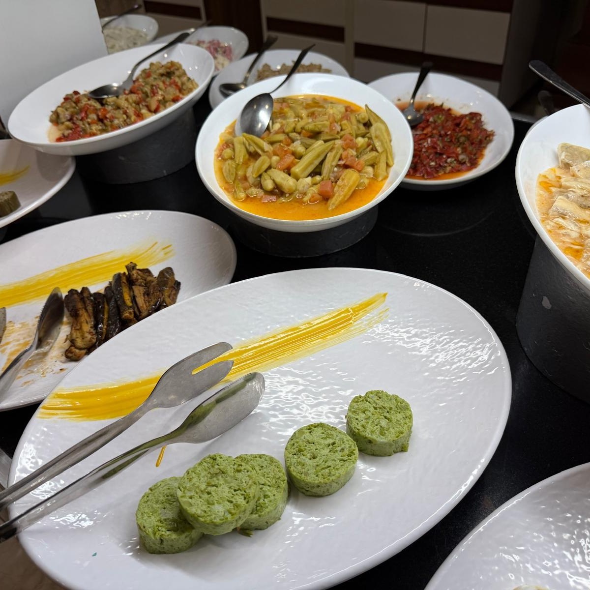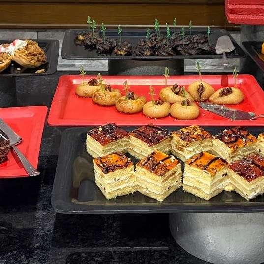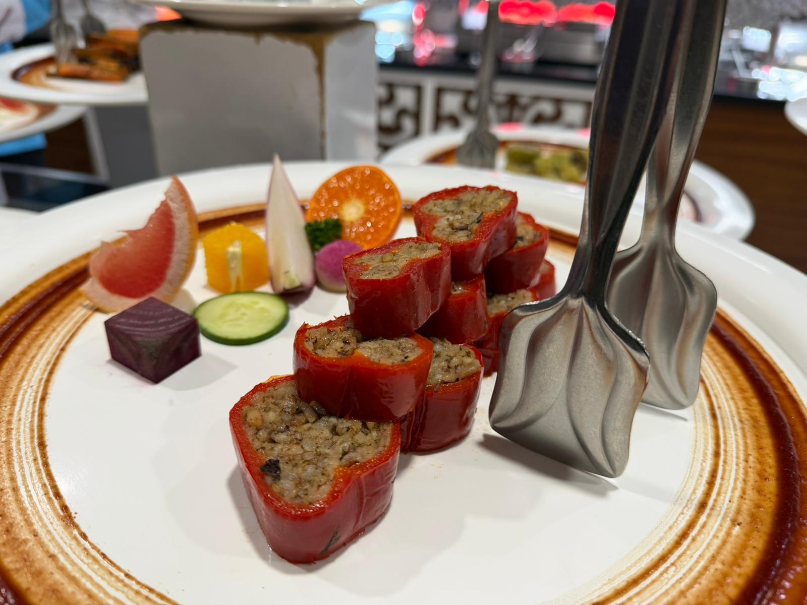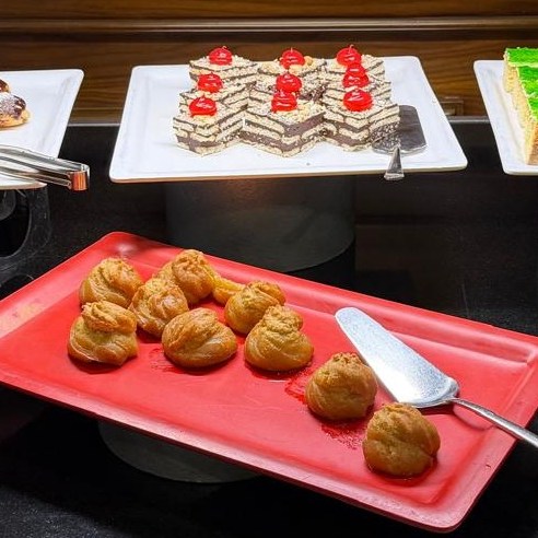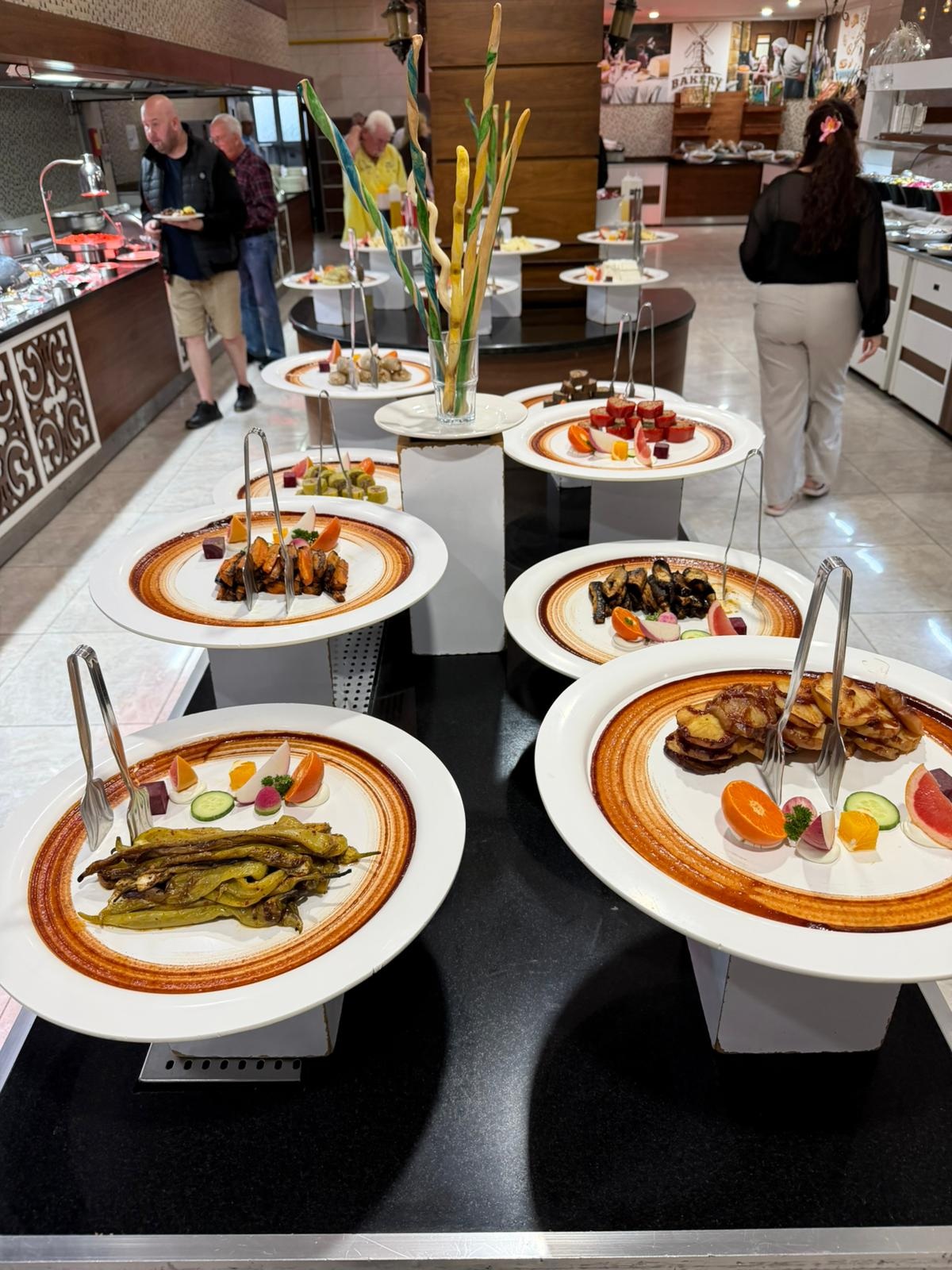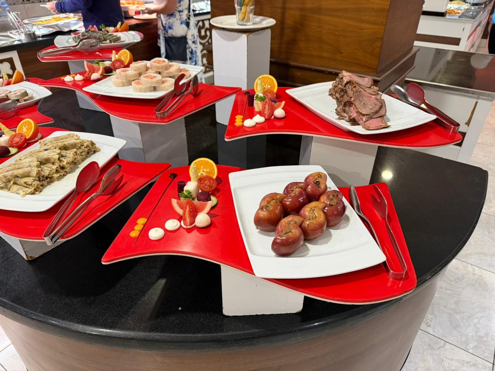 Het restaurant blijft ons verrassen. Niet alleen door de enorme keuze aan gerechten, maar ook door de manier waarop alles wordt gepresenteerd. De borden zijn prachtig opgemaakt en het buffet ziet er bijna uit als een kleine tentoonstelling.