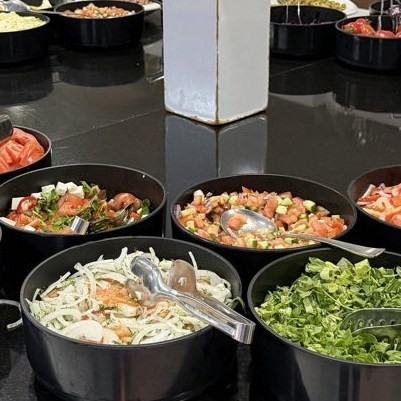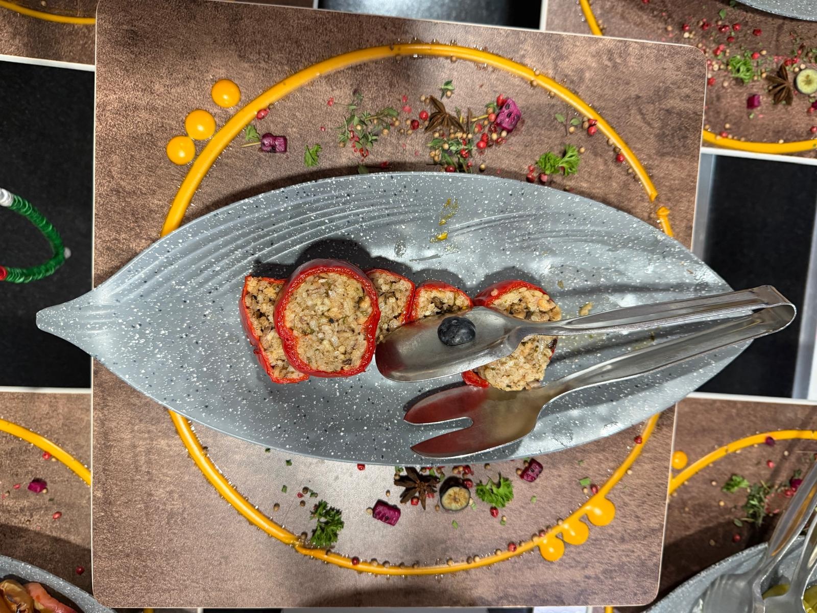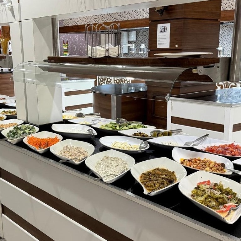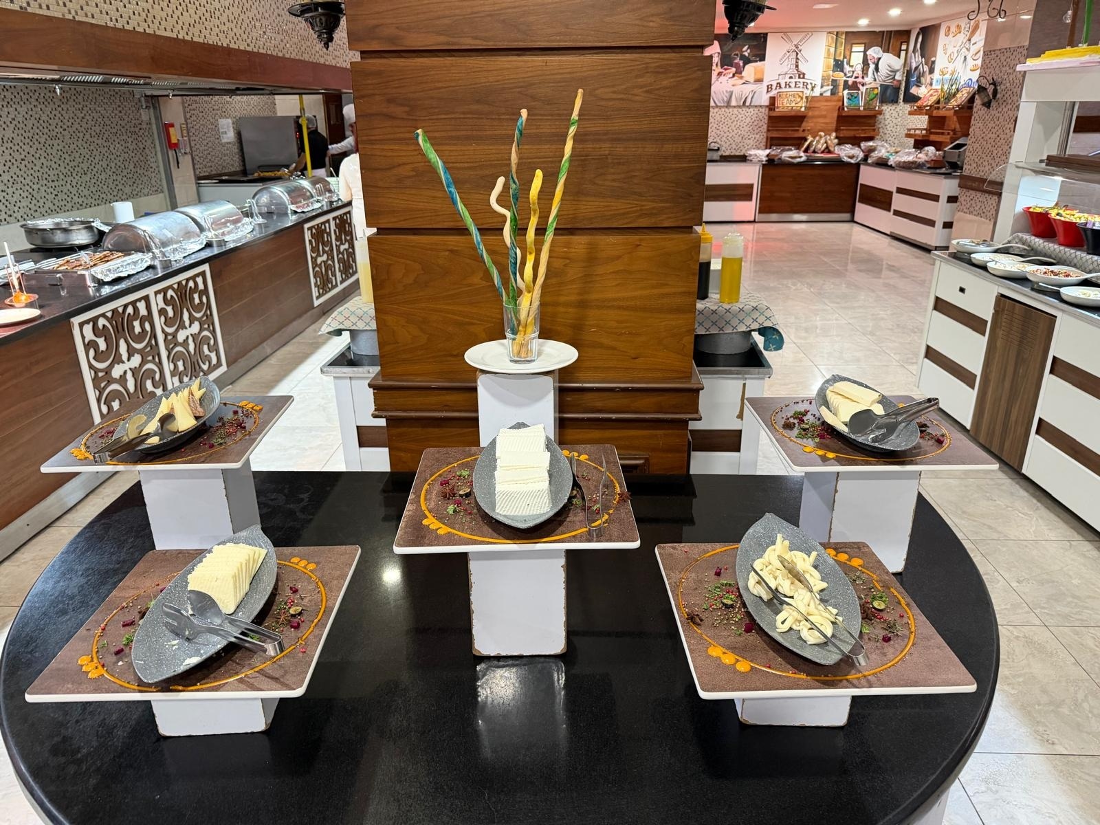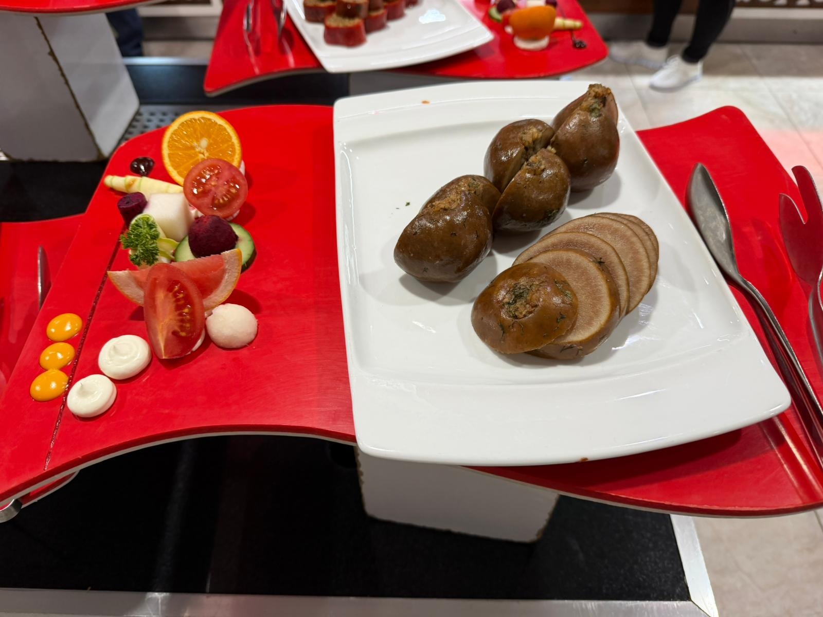 Het restaurant blijft ons verrassen. Niet alleen door de enorme keuze aan gerechten, maar ook door de manier waarop alles wordt gepresenteerd. De borden zijn prachtig opgemaakt en het buffet ziet er bijna uit als een kleine tentoonstelling.