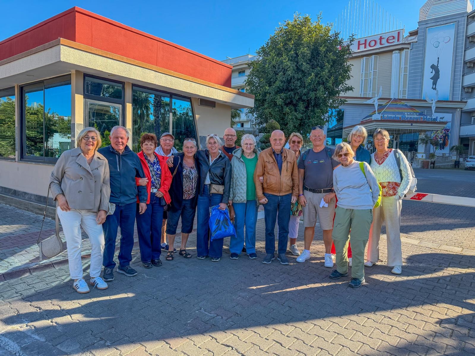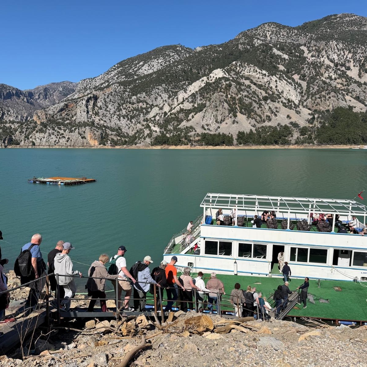 Vandaag verzamelen we ons al vroeg want we worden om 8.30 uur opgehaald voor een dagexcursie. Mustafa onze gids verwelkomd ons. We zijn met 14 gasten. Eigenlijk begint het seizoen pas 1 april dus we zijn vroeg😁. Mustafa vertelde dat hij 4 maanden geen Nederlands meer had gesproken maar hij kon het nog goed.