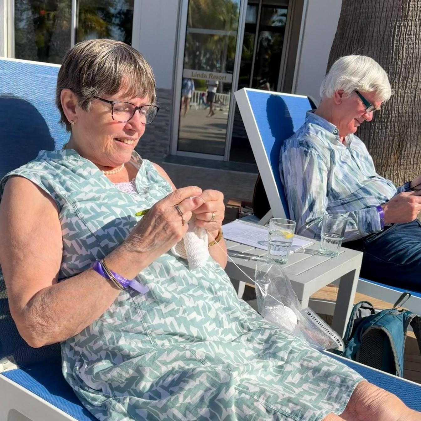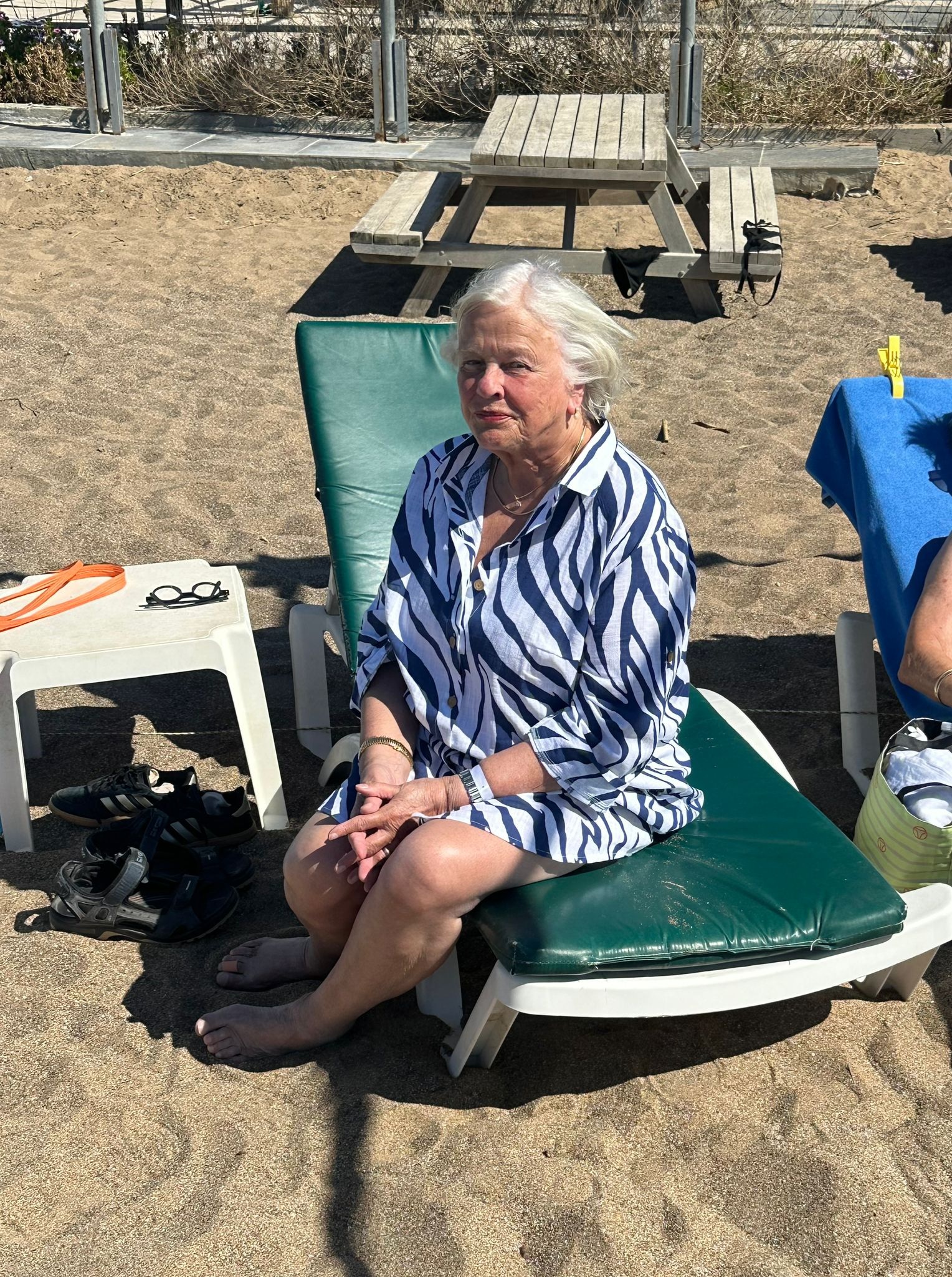 Vanmiddag heerlijk genoten van het zonnetje. De een leest een boekje, de ander proost op de mooie vakantie en Corrie is lekker aan het haken. Natuurlijk zijn er ook al verschillende mensen de vanmiddag gebruik maken van de Haman.