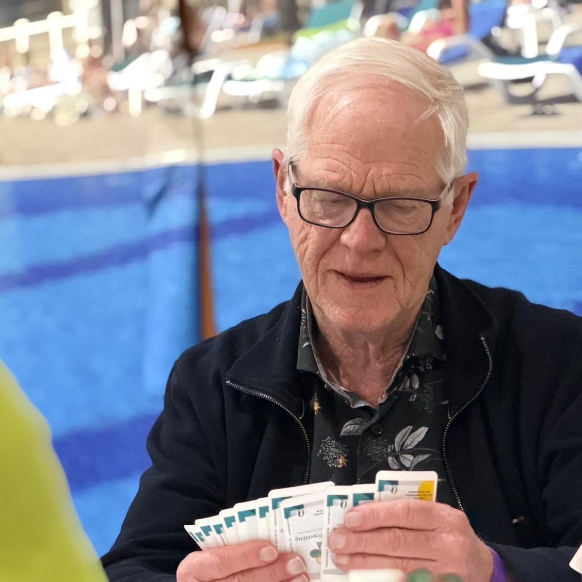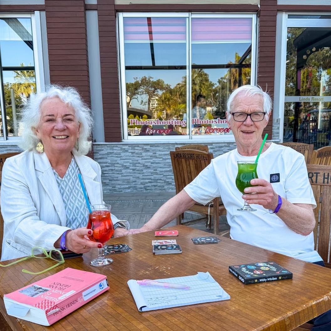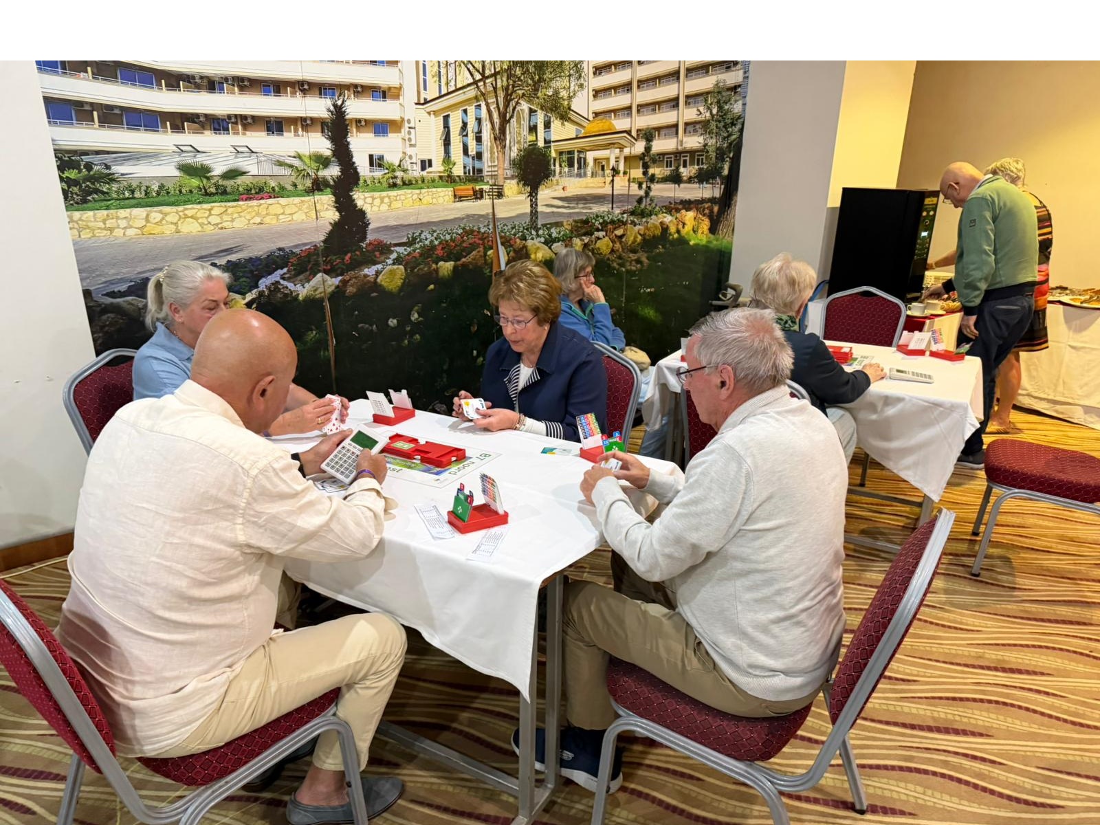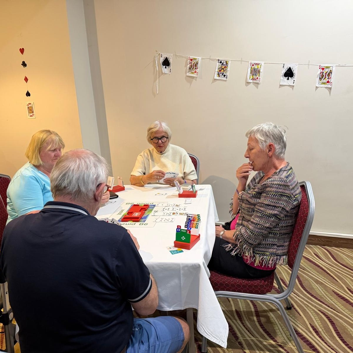 Na het welkomstcadeautje zijn we om 17.15 we begonnen met bridgen. Na twee ronden gespeeld te hebben, hebben we genoten van het diner. Daarna werden nog vier ronden gespeeld. Zo konden we het bridgen ruim voor 23.00 uur afronden, zodat iedereen nog even gebruik kon maken van de all-inclusive faciliteiten. 🍹♣️