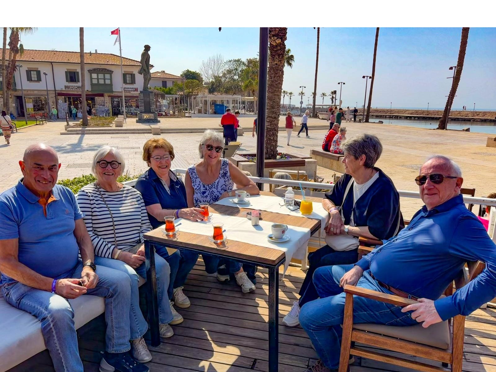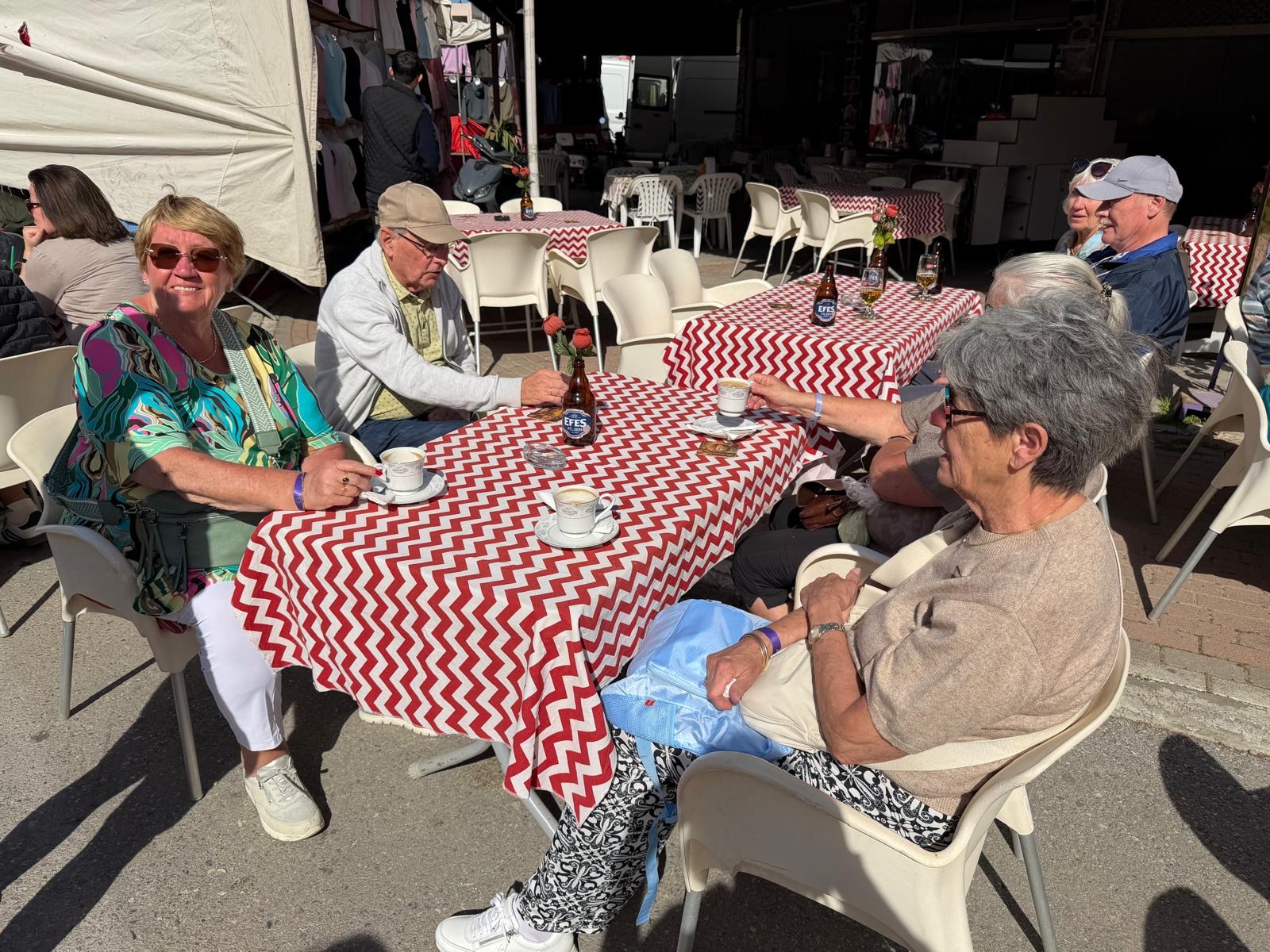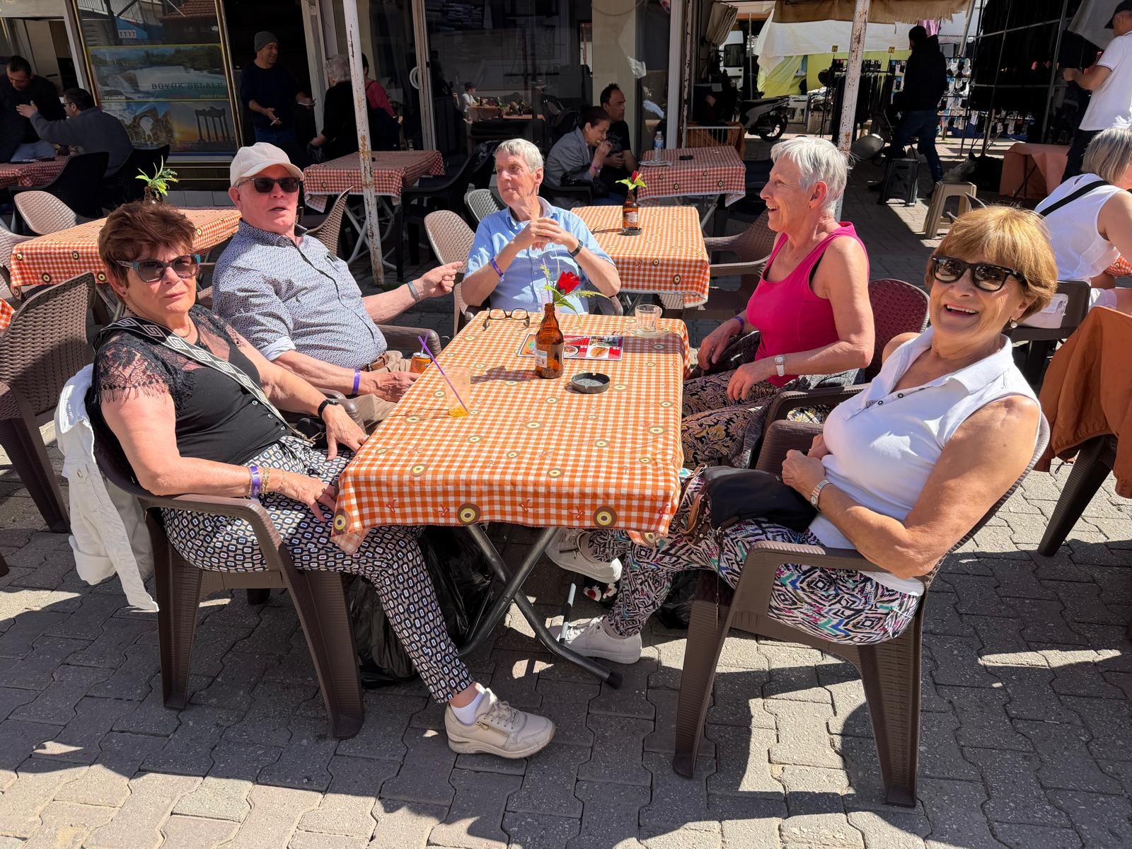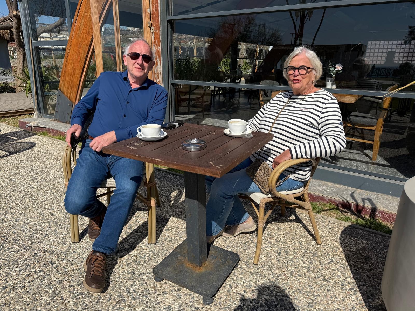 Even later kwamen ook Henk en Toos en Jan en Marianne genieten van de koffie aan het terras. Later nadat we uitgewandeld waren met de taxi terug om in het hotel weer aan te schuiven aan de lunch.