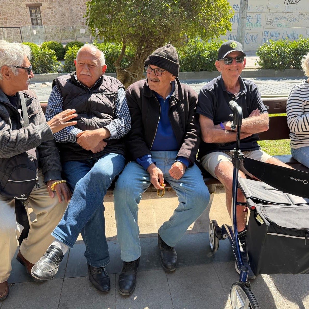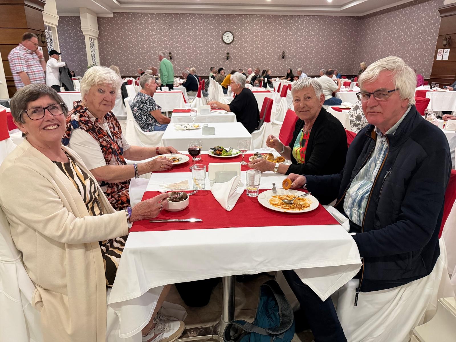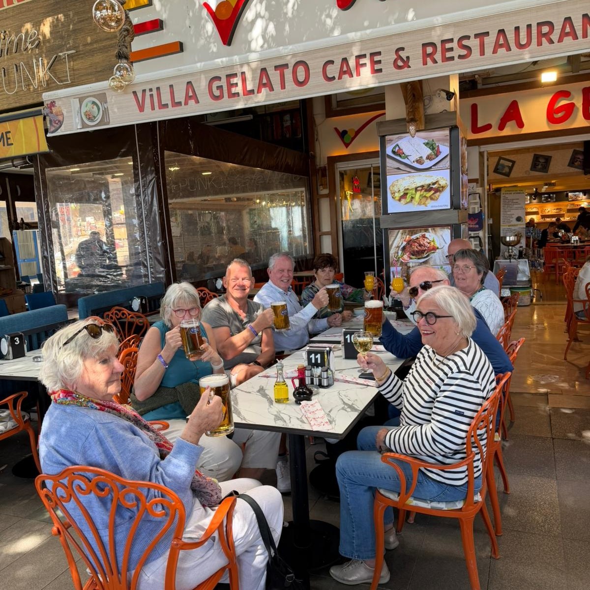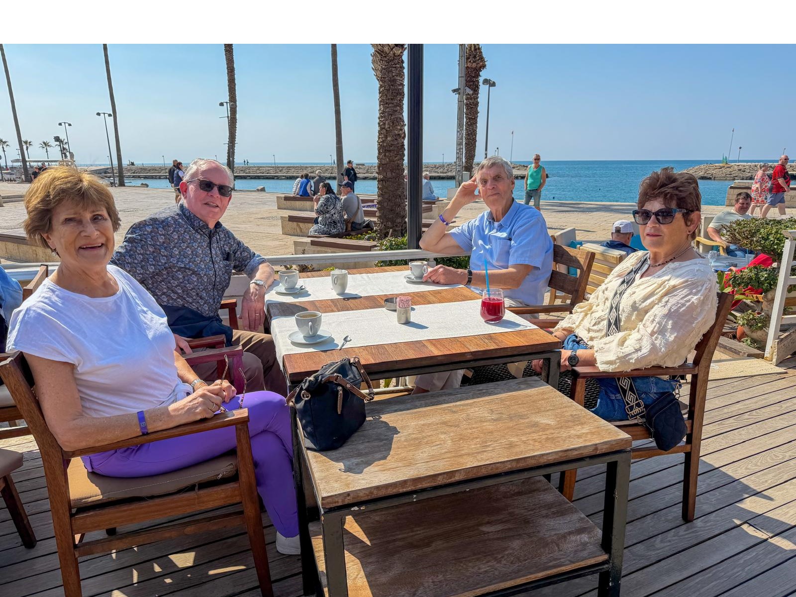 Even later kwamen ook Henk en Toos en Jan en Marianne genieten van de koffie aan het terras. Later nadat we uitgewandeld waren met de taxi terug om in het hotel weer aan te schuiven aan de lunch.