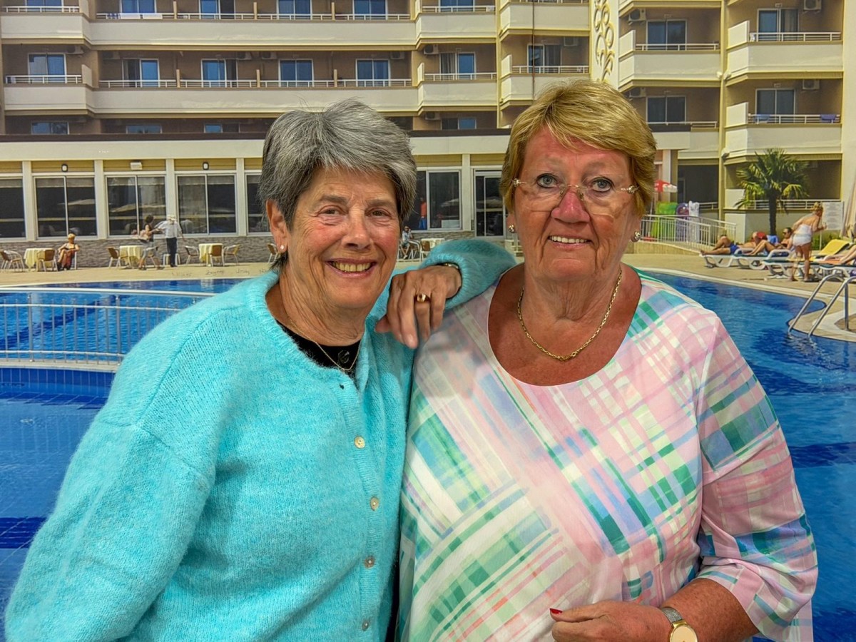 Er zijn onder ons helden die toch het water in gaan. Het is superkoud. Iedereen is verder aan het genieten van de zon, de lunch en de vriendelijke bediening. Hoe luxe is dit: ze komen de koffie en andere drankjes gewoon brengen aan het zwembad! Ook wordt er een robertje gebridged. Bart en Marieke zijn de buurt met een auto aan het verkennen.