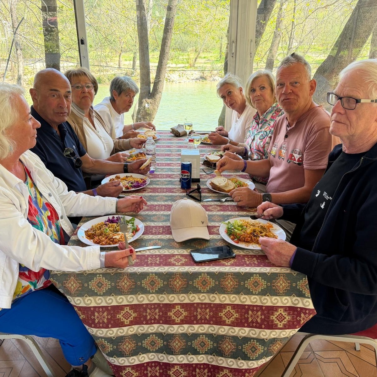 We lunchen aan de Dim-rivier, een geliefde plek bij zowel de lokale bevolking als toeristen. Het water is helder en komt rechtstreeks uit de bergen, waardoor het zelfs op warme dagen heerlijk koel blijft.