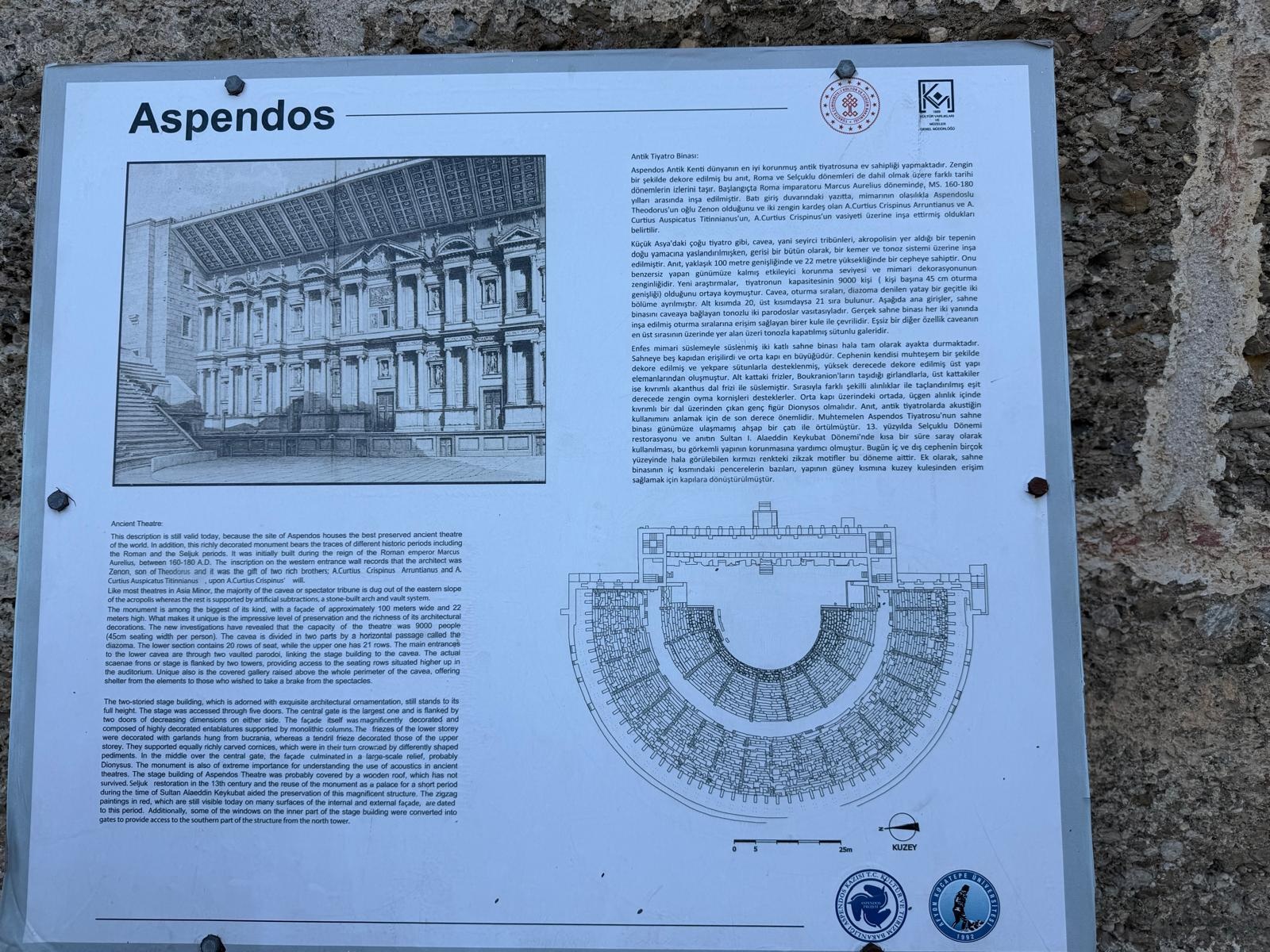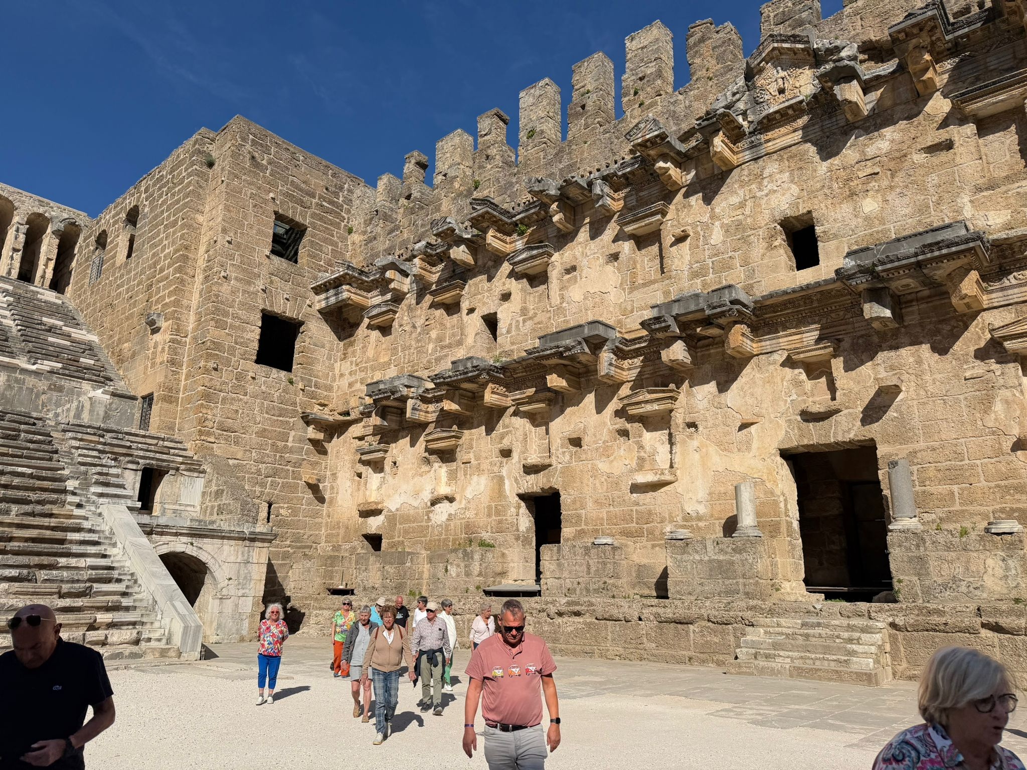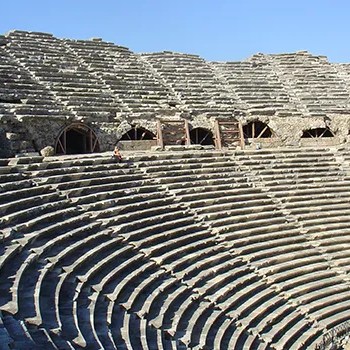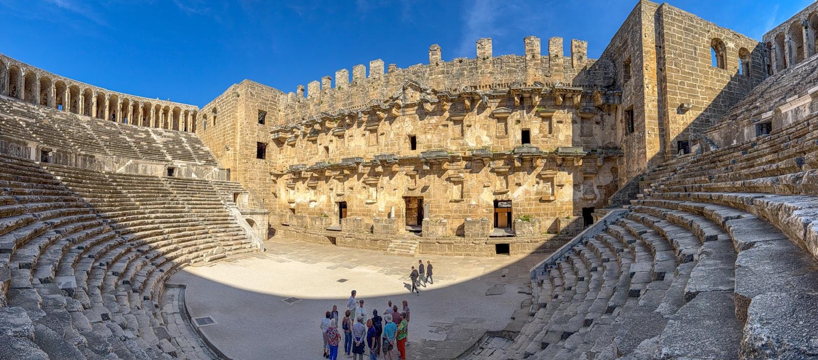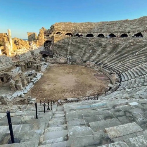 Tijdens onze tocht zien we het indrukwekkende, ongeveer 28 kilometer lange Romeinse aquaduct dat de stad Aspendos eeuwen geleden van water voorzag. Daarna bezoeken we het beroemde theater van Aspendos. Dit oude theater is één van de best bewaarde Romeinse theaters ter wereld. Het werd gebouwd tussen 160 en 180 na Christus tijdens het bewind van keizer Marcus Aurelius.