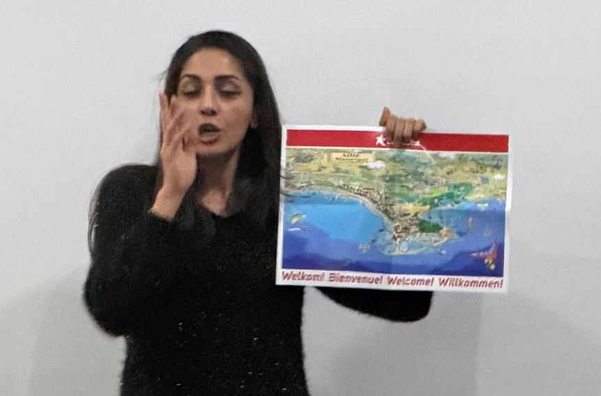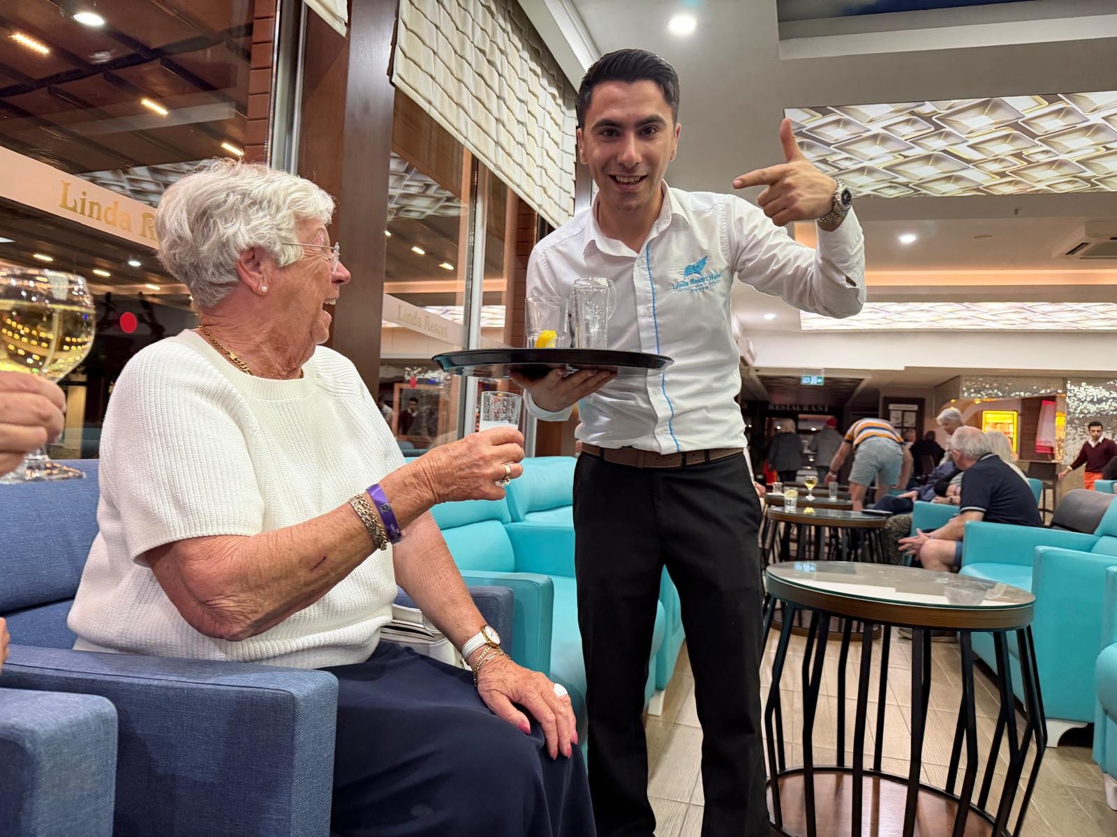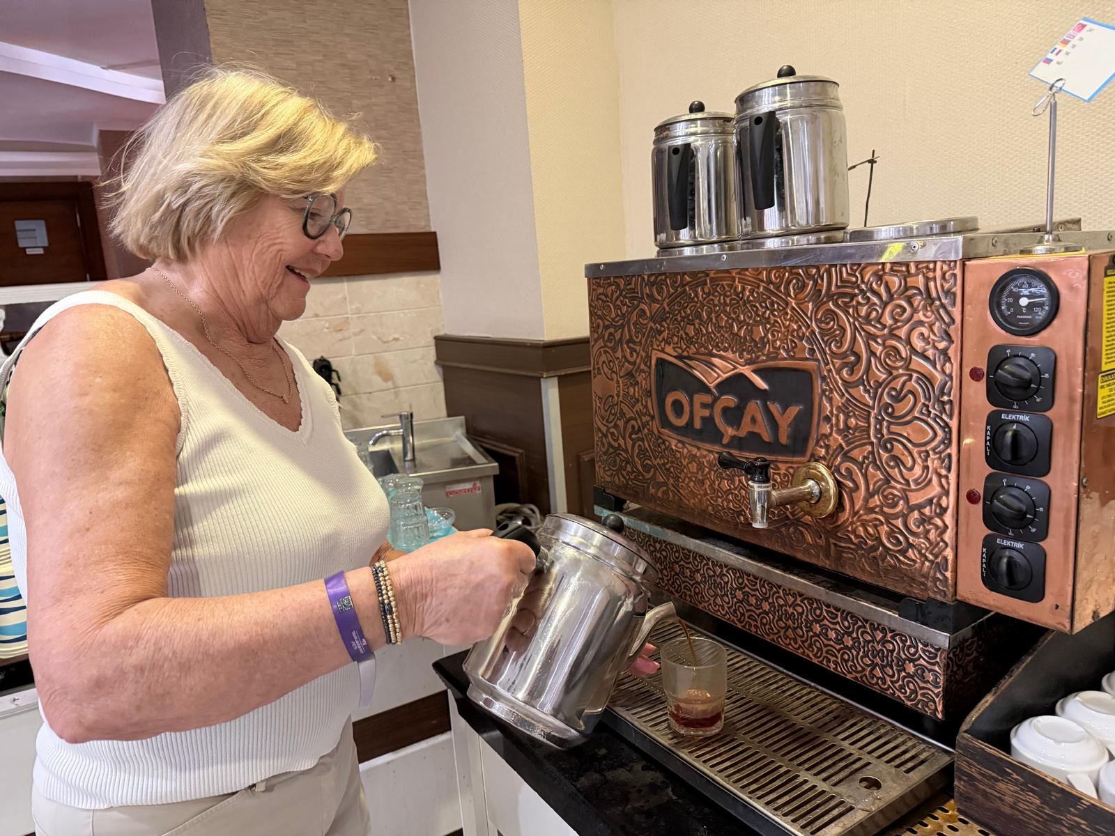 Na het welkom van BridgeTravelling heeft Gulsah van Corendon wat verteld over Side, de markt in Manavgat en alle gebruikelijke dingen. Vervolgens heeft ze ons geïnformeerd over drie excursies. Nadat we alle gemeenschappelijke vragen hadden gesteld konden de gasten inschrijven voor de excursies. Nu iedereen heeft ingeschreven komen ze zo terug om te betalen en gaan we lunchen.
