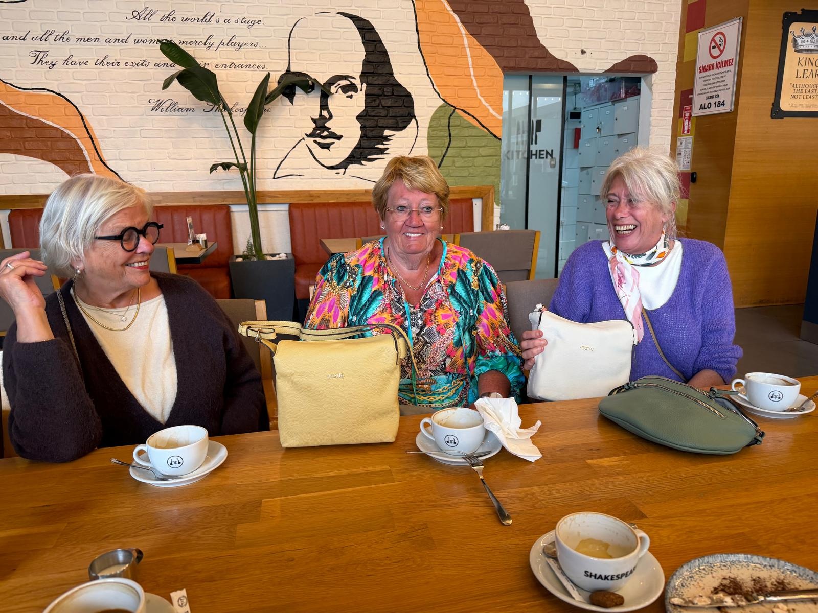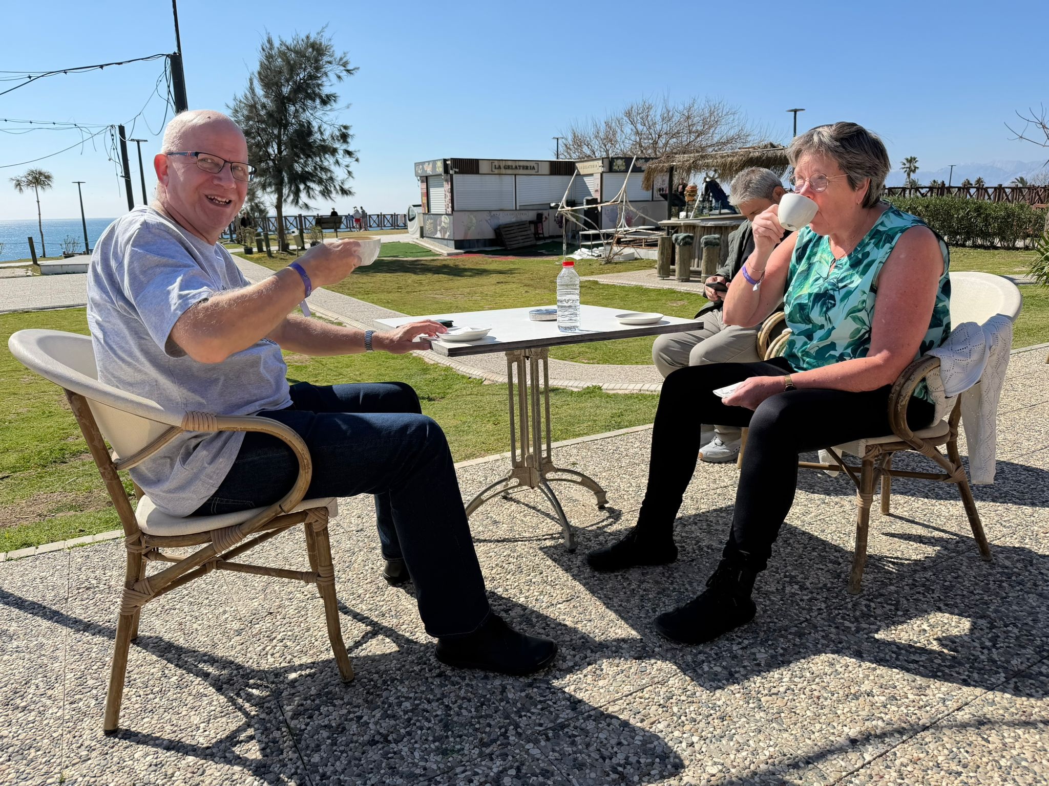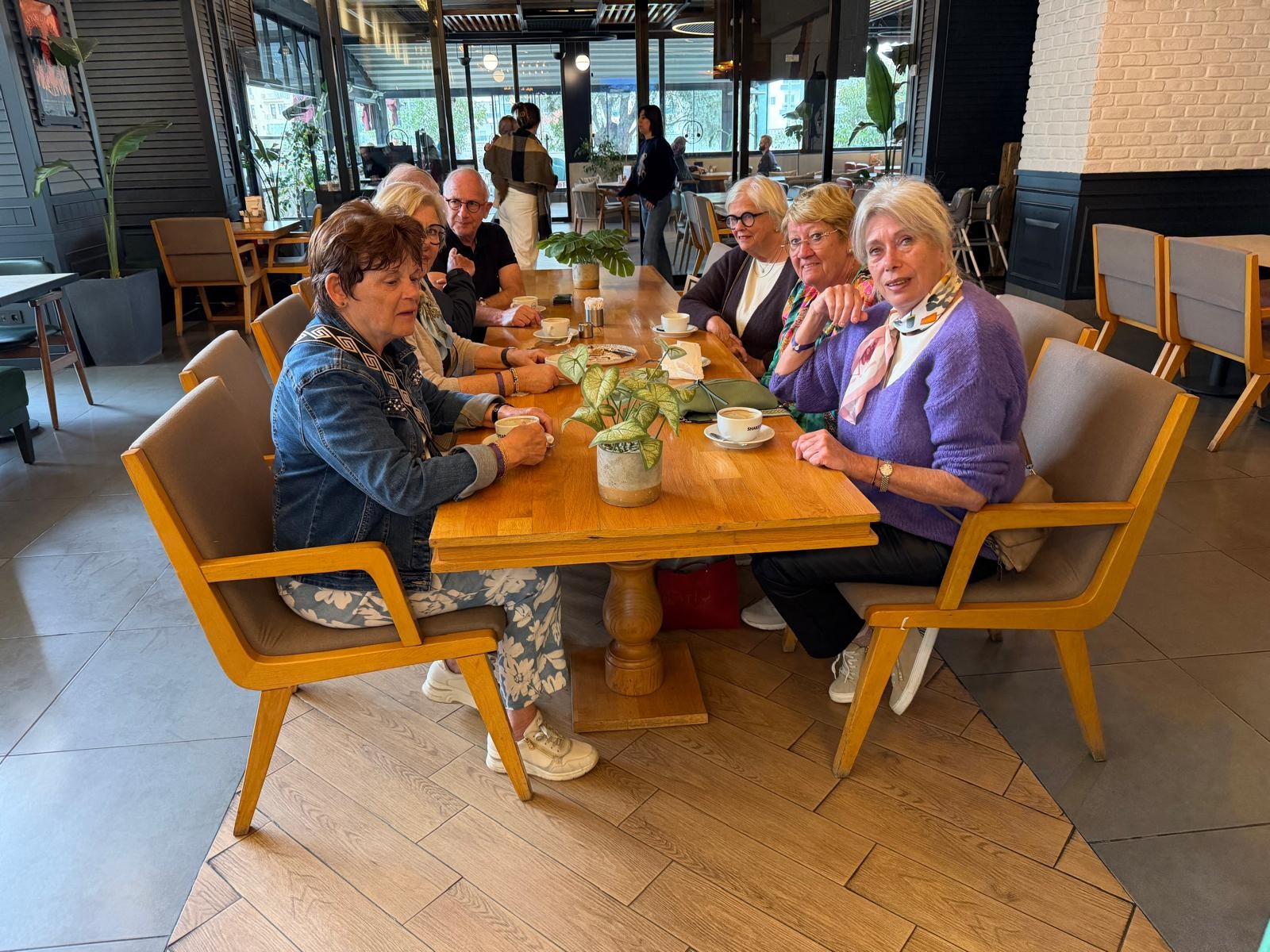 Even verderop dan maar naar de koffie. Heerlijk in het zonnetje genoten van lekkere koffie/thee/verse sap. Het was weer heel lekker in het zonnetje. Toen we opstonden was het bewolkt maar die bewolking was gelukkig nu weg.
