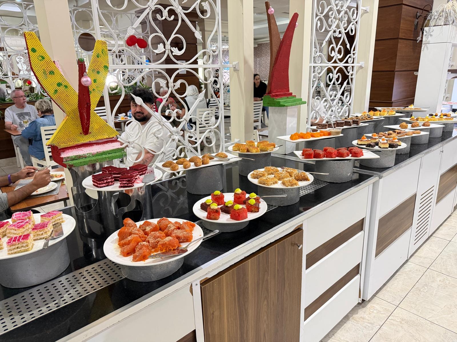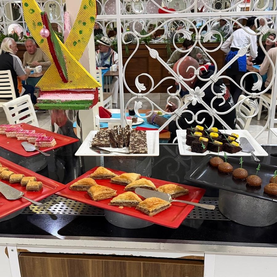 We hebben weer genoten van het diner en de desserts 🙂 . Turkse hotels staan bekend om hun heerlijke desserts en komt uit de lange culinaire traditie van het voormalige Ottomaanse Rijk. In dat rijk waren patissiers (banketbakkers) al beroemd om hun verfijnde zoetigheden.