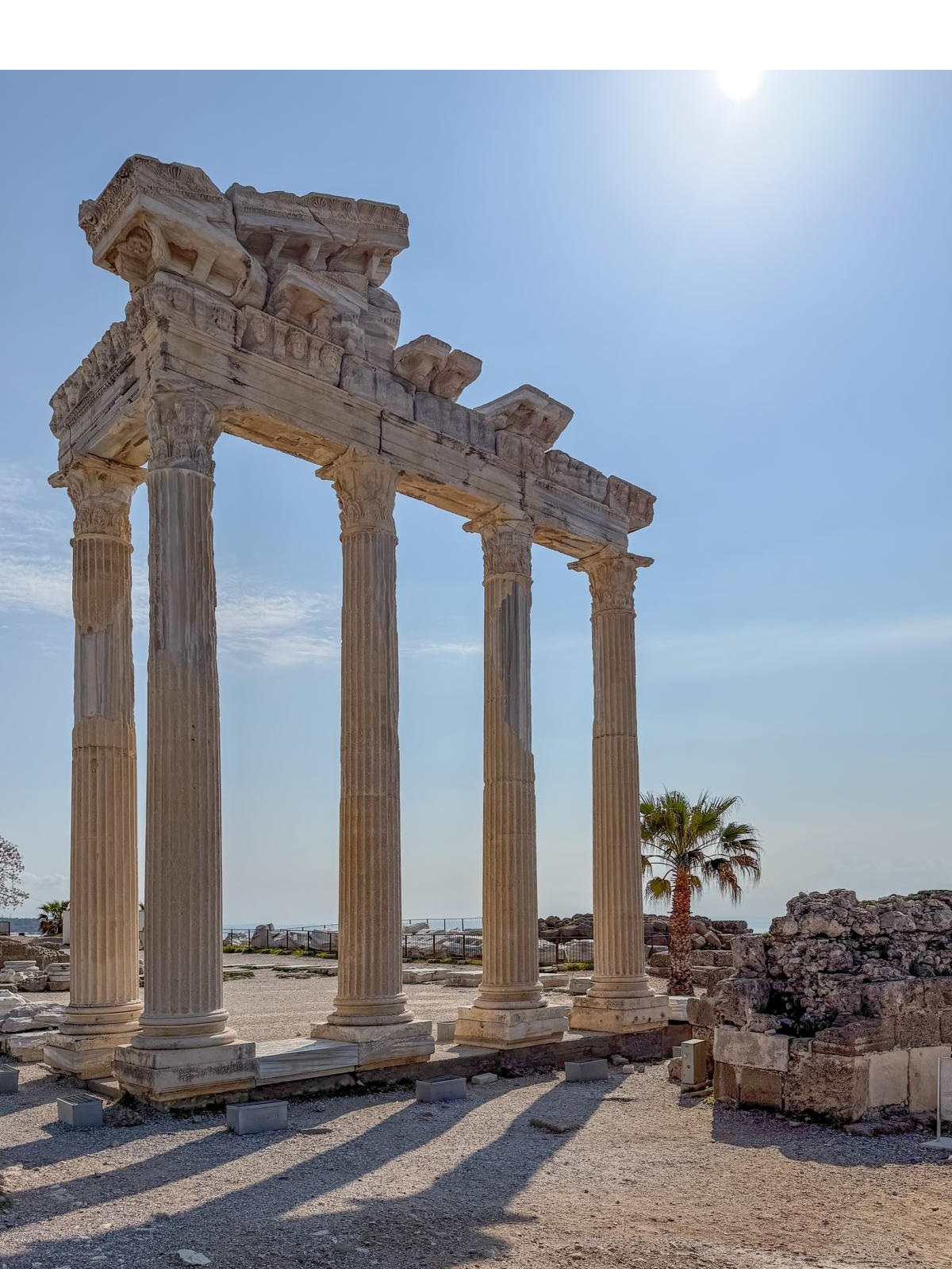 We hebben Hotel Linda in Side gekozen als bridgelocatie omdat Side een bijzondere plaats is waar historie en vakantiegevoel samenkomen. In het oude centrum van Side wandel je langs gezellige straatjes met winkels en terrasjes, terwijl overal resten uit de Romeinse tijd te zien zijn. De bekende Tempel van Apollo aan zee en het indrukwekkende Romeinse theater herinneren aan de tijd dat Side een belangrijke havenstad was. Juist die combinatie van oude ruïnes, de zee en de levendige sfeer maakt Side zo’n bijzondere plek.