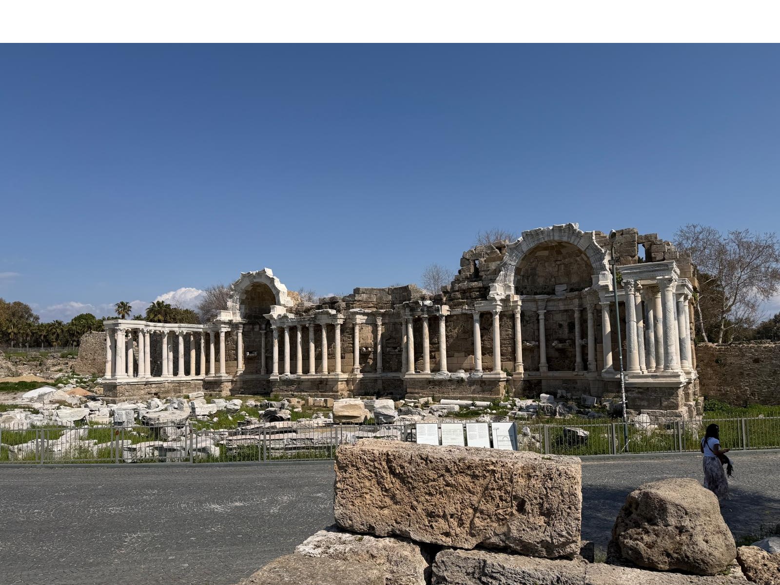 We stappen al om 08.00 uur in een minibus om een gedeelte van de regio te verkennen. We beginnen bij de ruïnes van de oude Grieks-Romeinse stad Perge. De stad staat bekend om zijn archeologische overblijfselen die inzicht geven in de stedelijke planning en architectuur van die periode (2e of begin van de 3e eeuw na Christus).