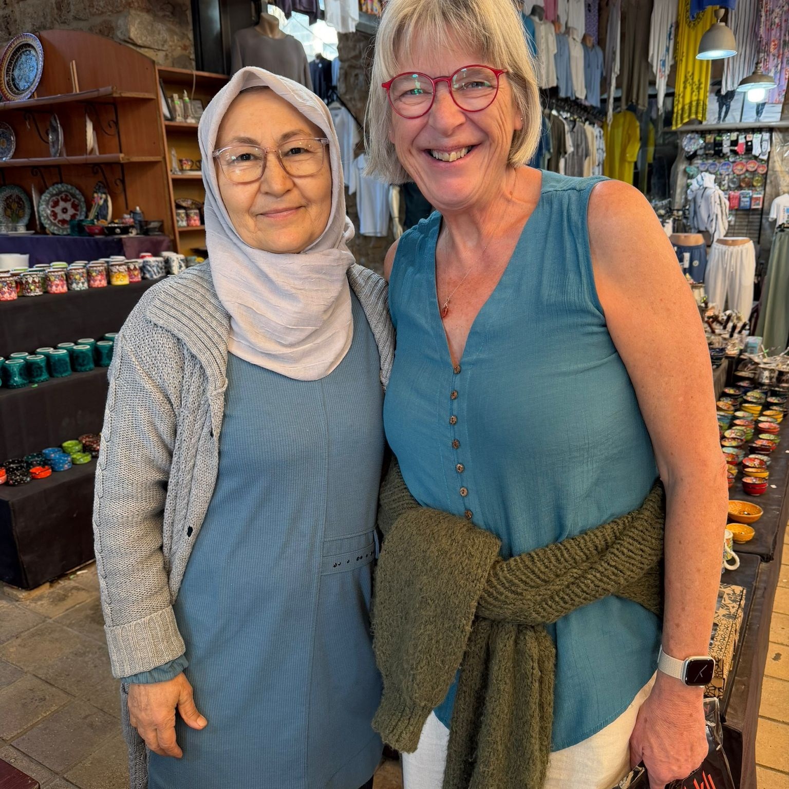 We komen als eerste aan bij Viola; een juwelier in Antalya. Hier wordt in het Nederlands uitleg gegeven over het maken van de sieraden. Gebruik je meer koper dan wordt goud geler en gebruik je meer zilver dan wordt goud witter. Sultaniet is is een zeldzame edelsteen die afkomstig is uit de bergen bij Milas, niet ver van Bodrum. Deze steen verkleurt door het licht. Je ziet de steen vooral in: ringen, hangers en kettingen, oorbellen en armbanden. Corrie kon de verleiding niet weerstaan en kocht een prachtige ring.