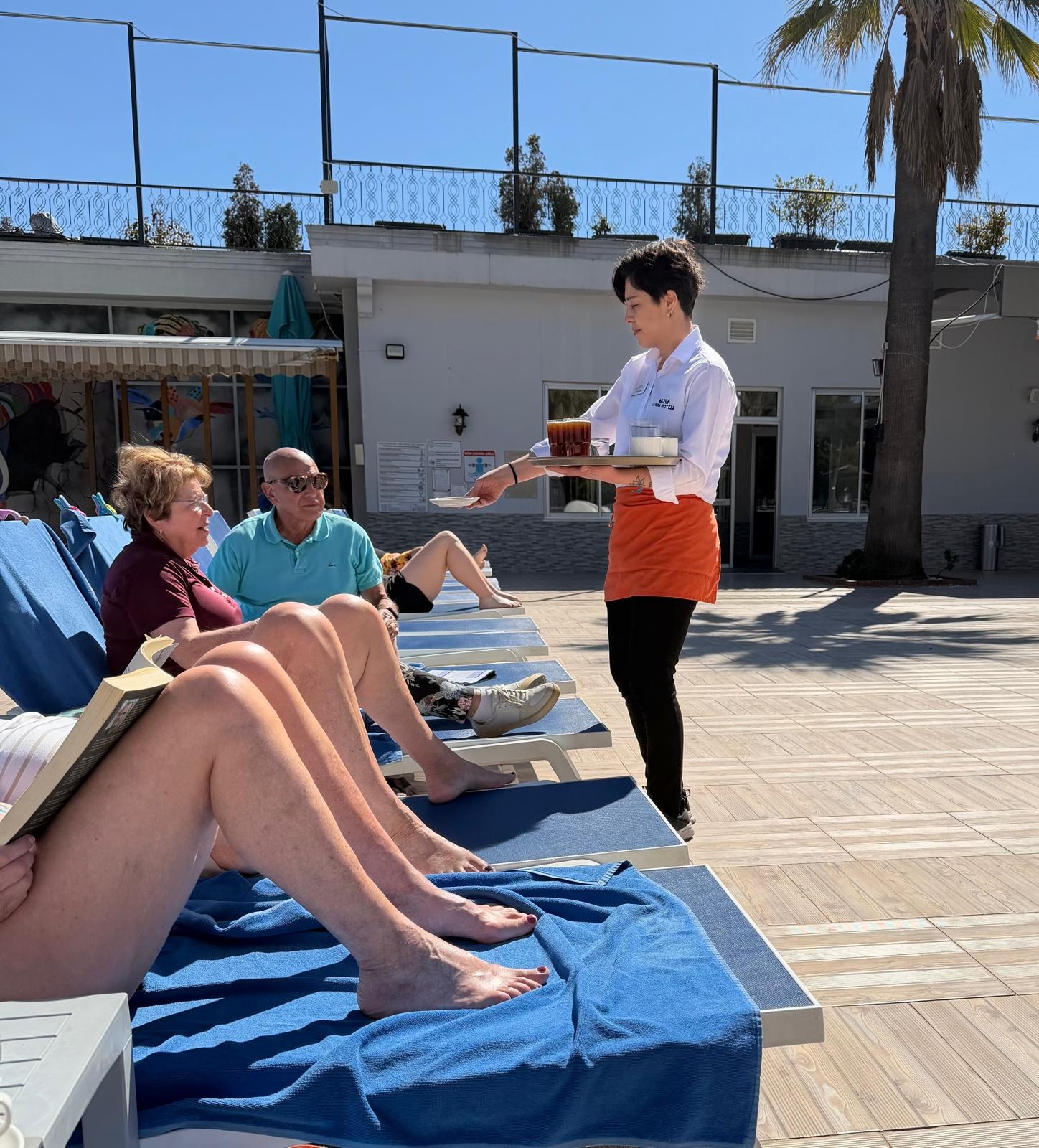 In het hotel kun je ook een manicure laten doen, maar ik, Marianne, kwam de eerste dag aan met al mooie gelakte nagels. Aan het zwembad wordt vast geproost op nog fijne laatste dagen 🙂 .