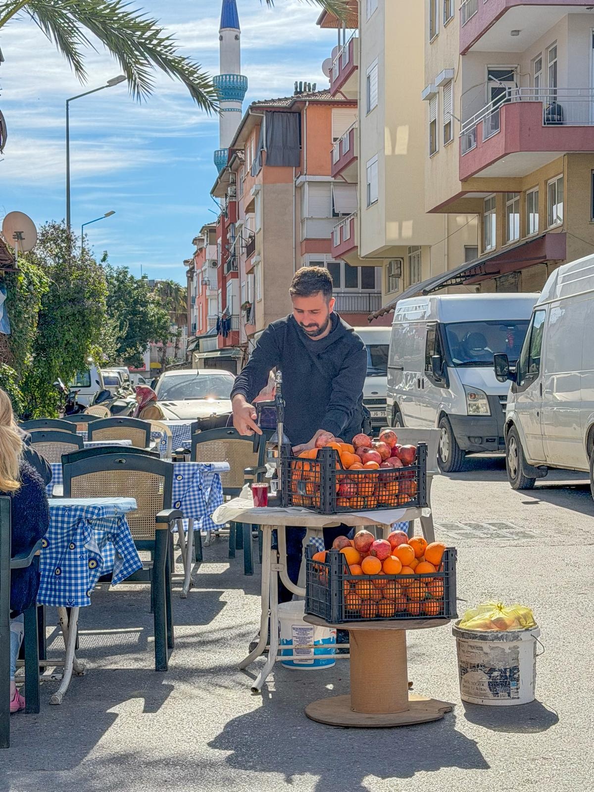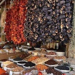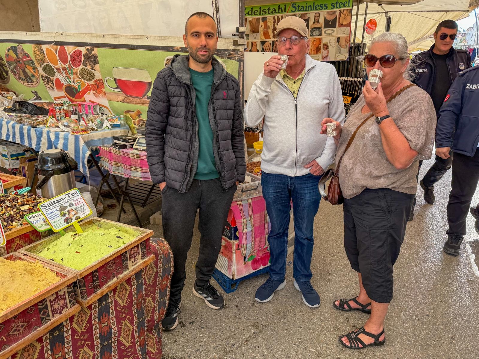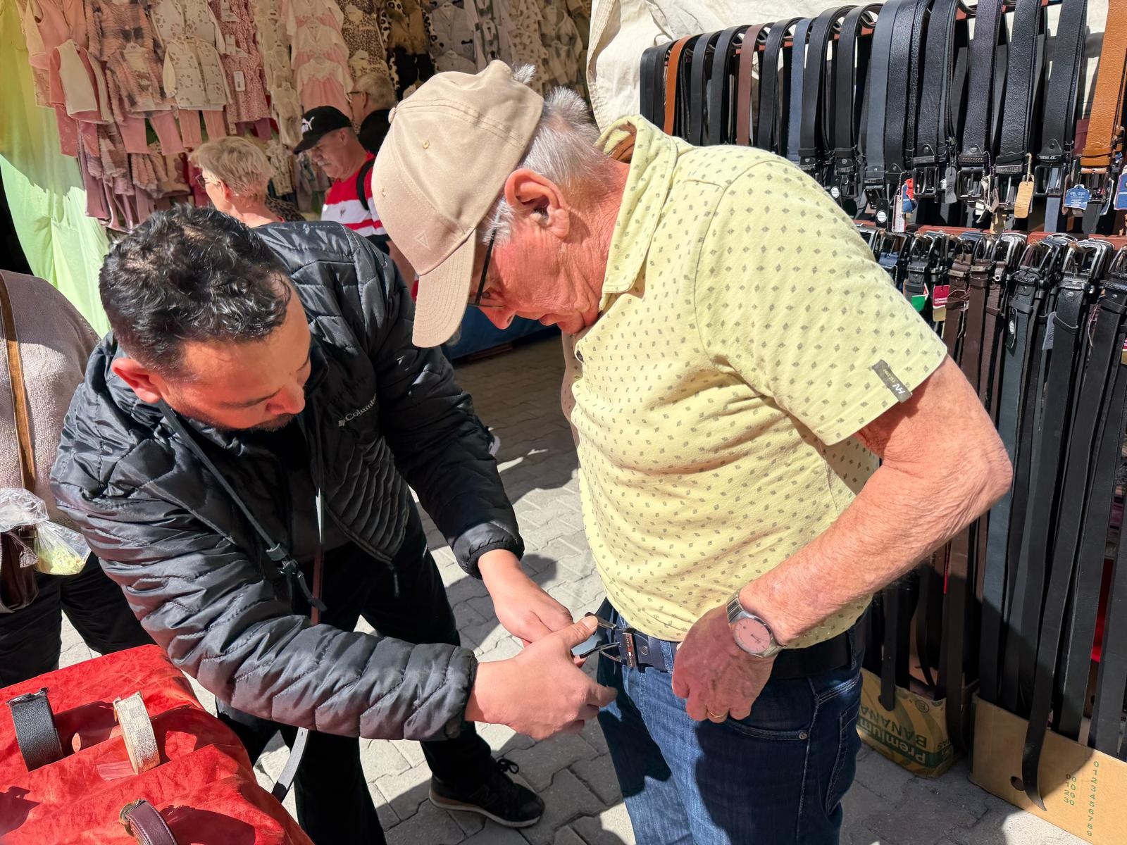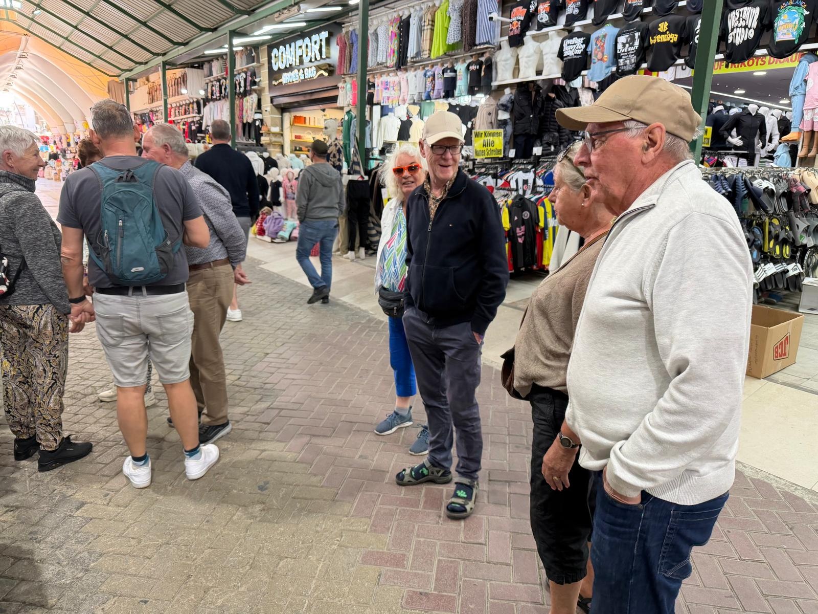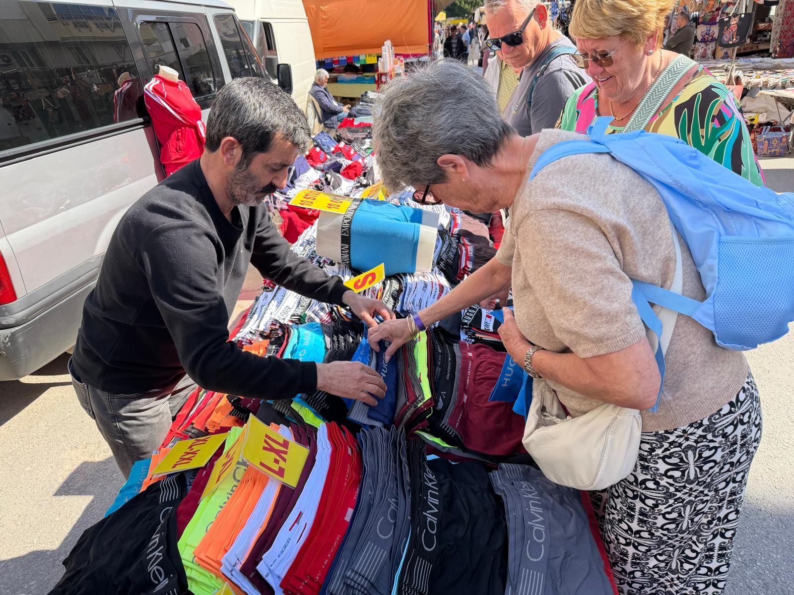 In vijf taxi’s zijn we vertrokken naar de markt van Manavgat. Deze markt is een van de bekendste en grootste markten in de regio van Antalya. Een overvloed aan kleuren en geuren ervaar je hier. Overal staan kraampjes met fruit, kruiden, kleding en souvenirs. Verkopers spreken je enthousiast aan om hun waar te bekijken en afdingen hoort er hier natuurlijk gewoon bij.