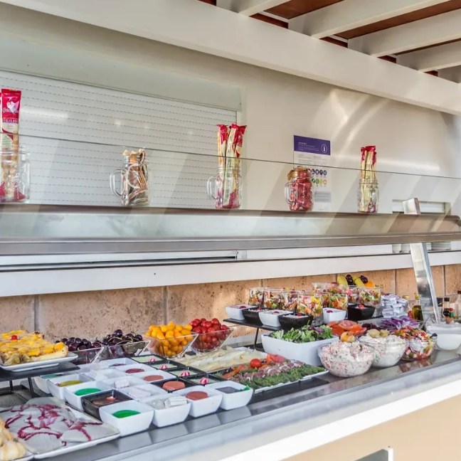 Ontbijt in buffetvorm (07.30-10.30 uur) Lunch in buffetvorm (12.30-14.00 uur) Diner in buffetvorm (19.00-21.00 uur) Diverse snacks (11.00-18.00 uur) Koffie, thee en koekjes (10.00-18.00 uur) IJs (12.30-18.00 uur) | Geselecteerde lokale (non-)alcoholische drankjes van 10.00 tot 23.00 uur Tegen betaling: import drankjes, à la carte dineren en alle consumpties na 23.00 uur 1 buffetrestaurant 2 bars |